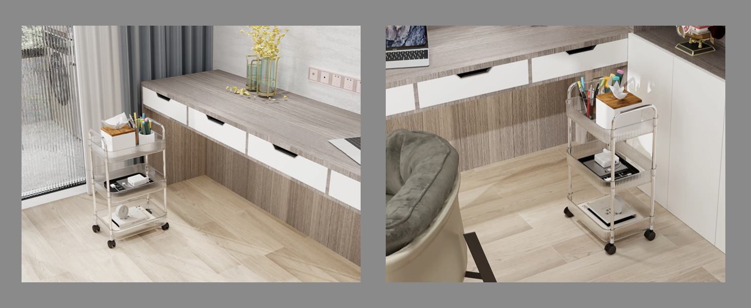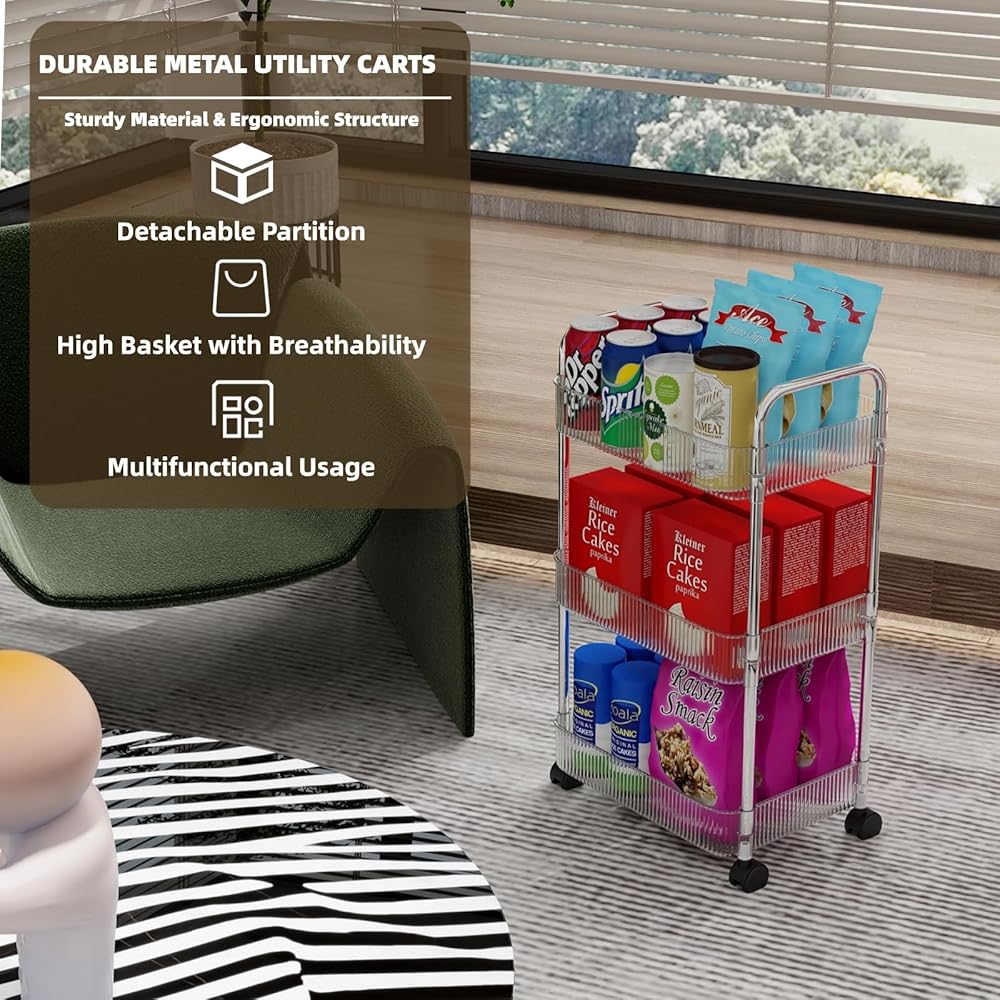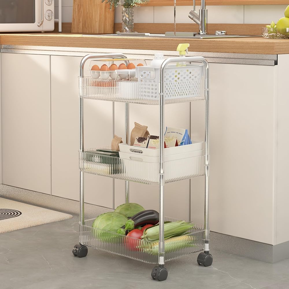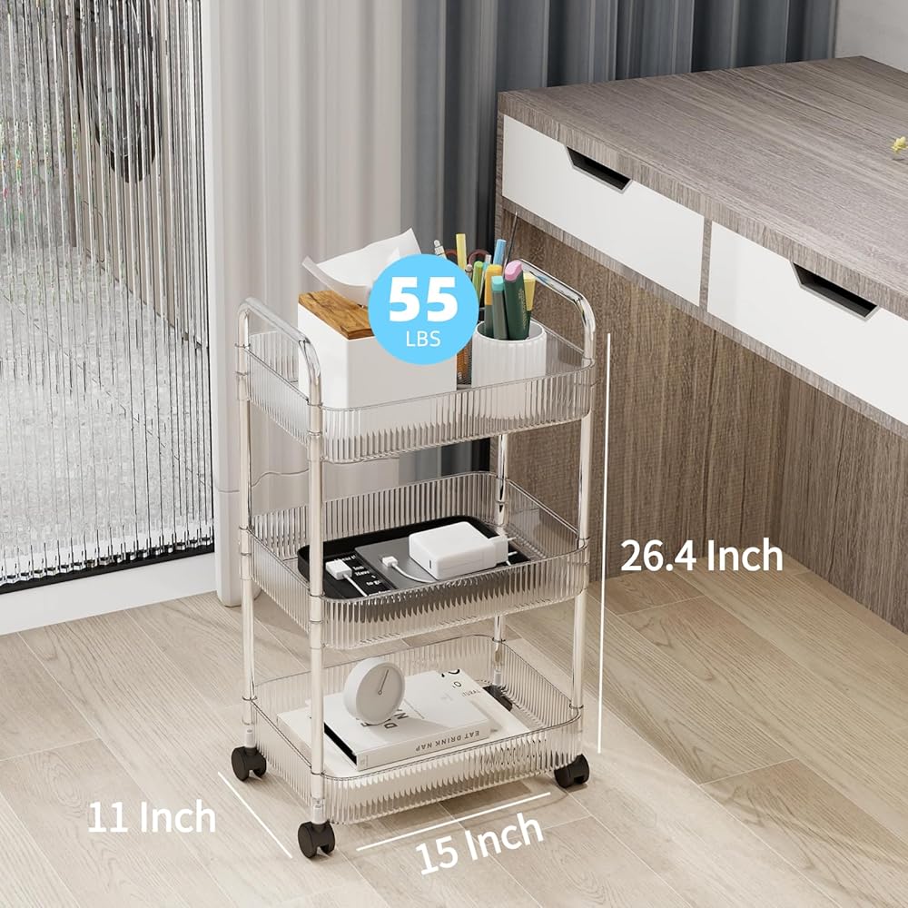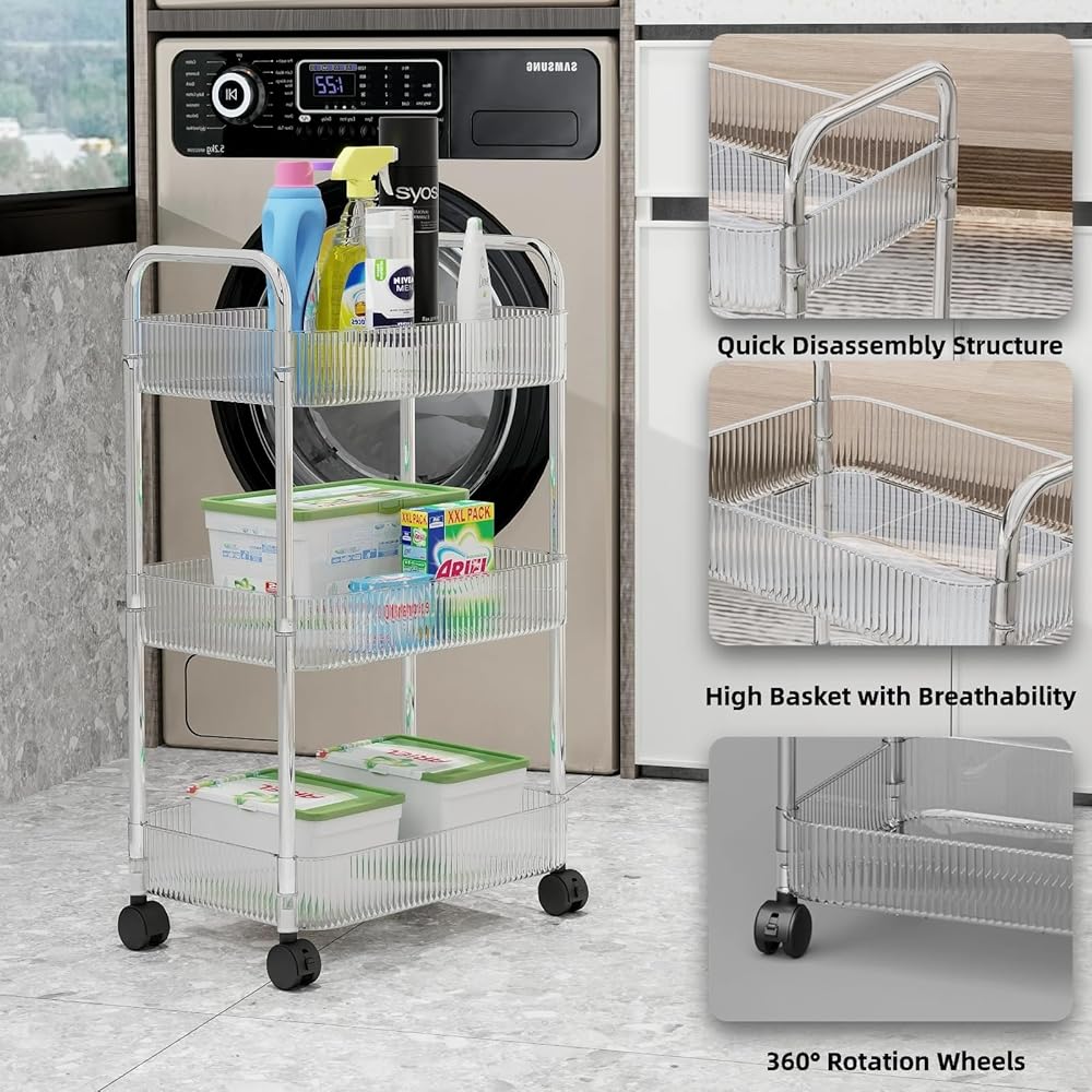 تصميم قوي وواسع - تتميز عربة الأدوات هذه بثلاث طبقات واسعة لتخزين مستلزمات الحمام أو اللوازم المكتبية أو توابل المطبخ. تمنع السلال العميقة العناصر من الانقلاب، مما يحسن استخدام المساحة.