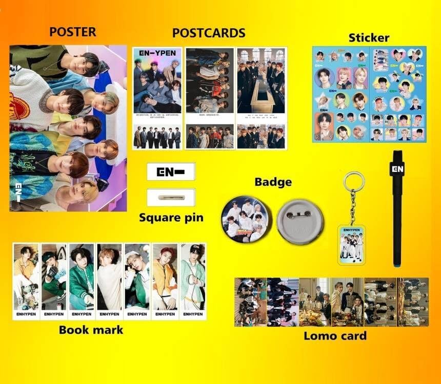 مجموعة هدايا Kpop EN-HYPEN، بطاقات صور EN-HYPEN، ملصق، قلم، ملصقات، علامات كتاب، شارة، دبوس زر، سلسلة مفاتيح للمجموعة