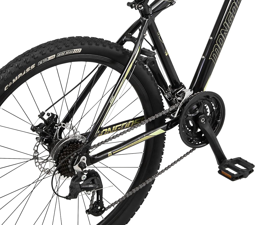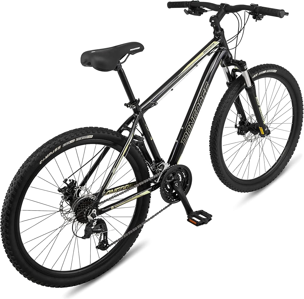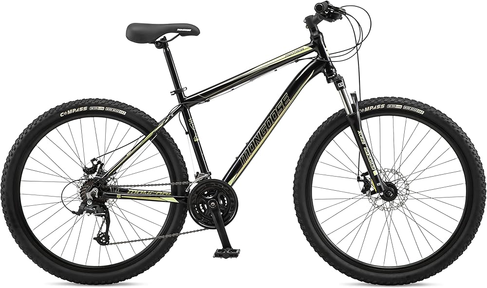 الدراجة الجبلية Mongoose Montana Sport and Comp للرجال والنساء، مجموعة نقل الحركة 18 أو 21 سرعة مع مبدلات الزناد، إطارات من 15 إلى 18.5 بوصة، وعجلات 27.5 بوصة