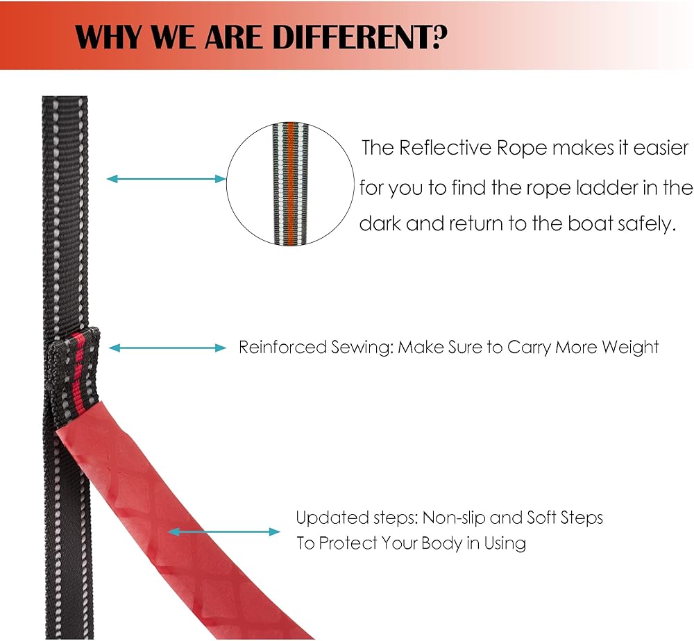 - The Reflective Rope makes it easier for you to find the rope ladder in the dark and return to the boat safely.