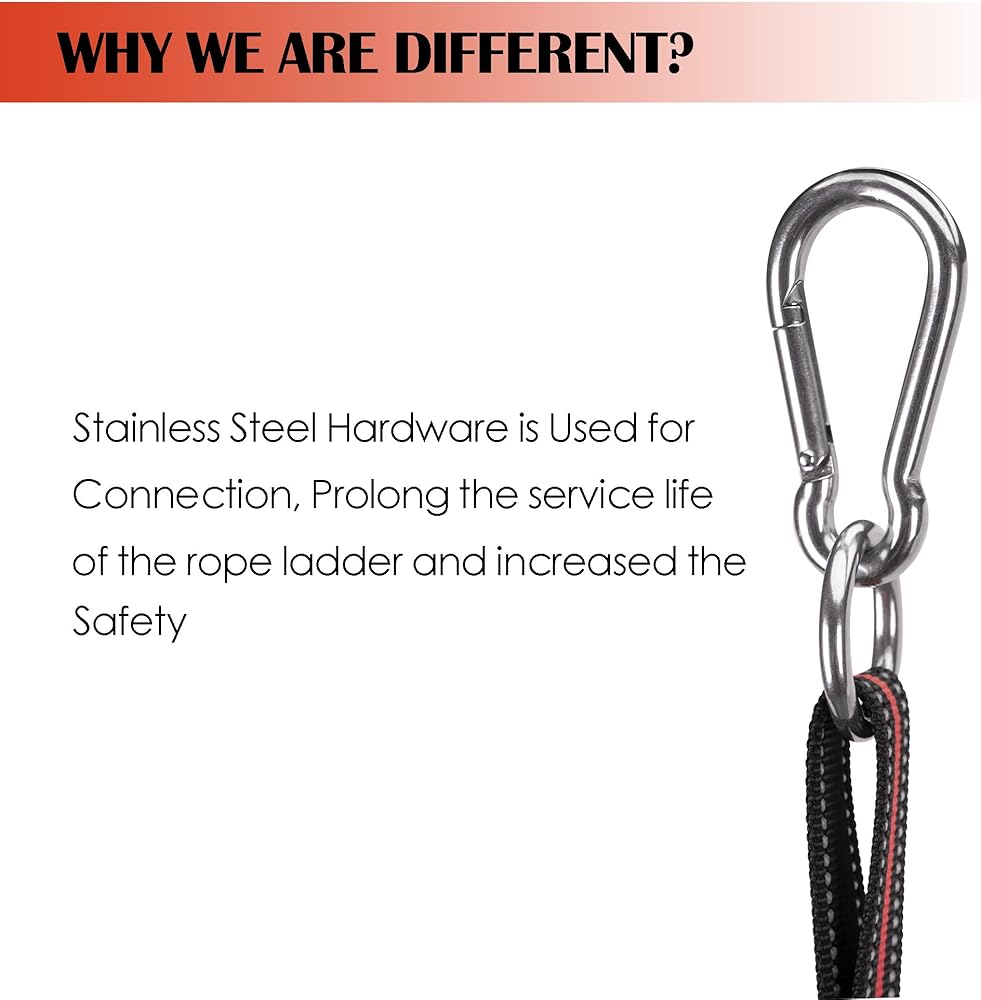 - Stainless Steel Hardware is Used for Connection, Prolong the service life of rope ladder, increased the safety