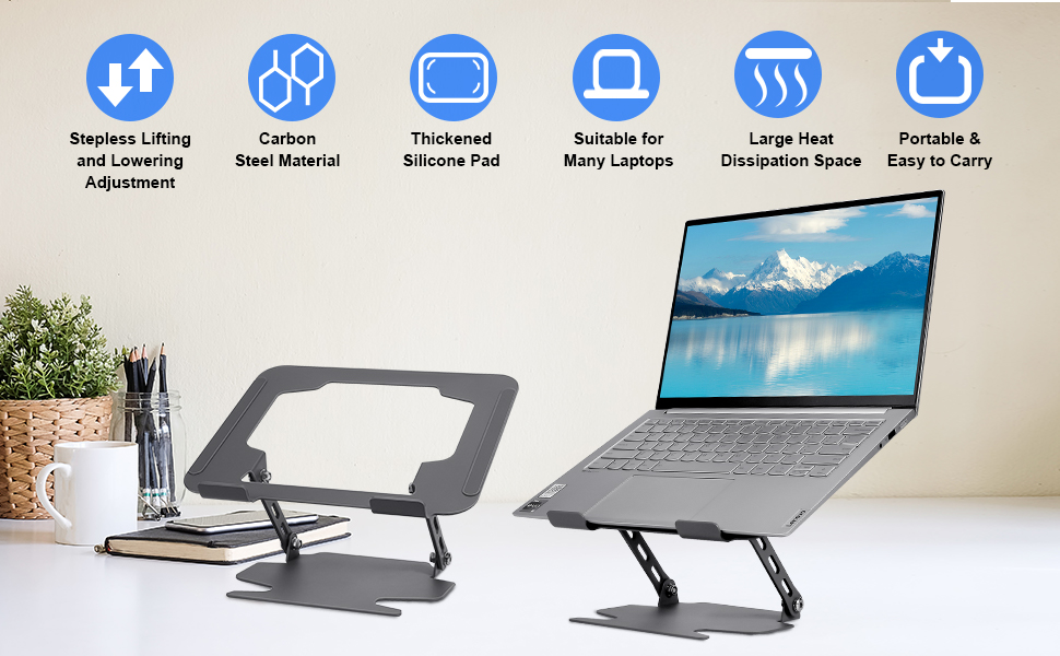 💻【مستقر ومتين】 حامل الكمبيوتر المحمول هذا مصنوع بخبرة من الفولاذ الكربوني عالي الجودة، مما يضمن ثبات ودعم طويل الأمد لجهاز الكمبيوتر المحمول الخاص بك.