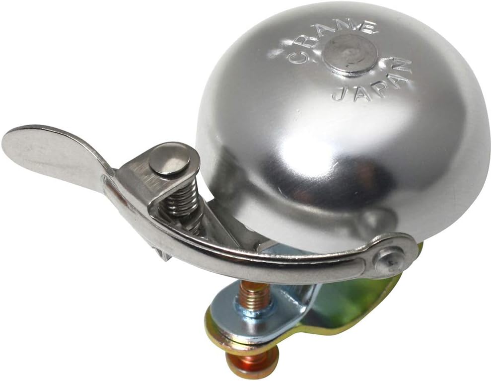 Crane Bike Bell, Suzu Mini Bicycle Bell, Steel Clamp, Made in Japan for City Bikes, Cruisers, Road Bikes or MTB, Fits handlebar diameters 22.2mm to 26.0mm