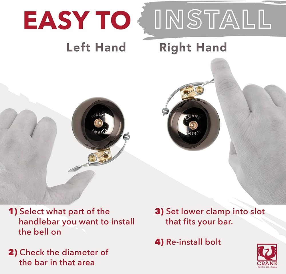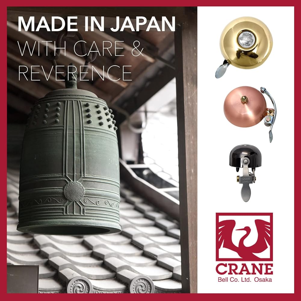 • PREMIUM JAPANESE BELL: Crane Bell Co. Ltd is bringing beautiful Japanese craftsmanship to your bike! We didn't compromise quality on any part of this bell. Our bicycle bells are truly unique and for bikers who care about the little things.