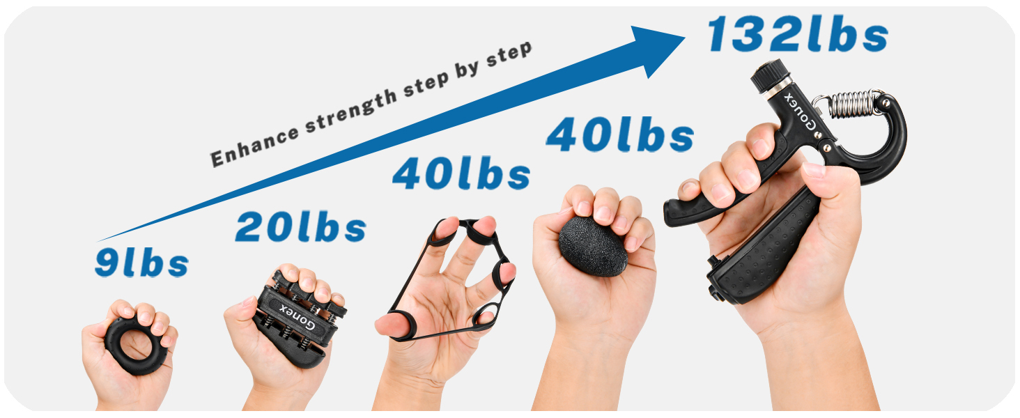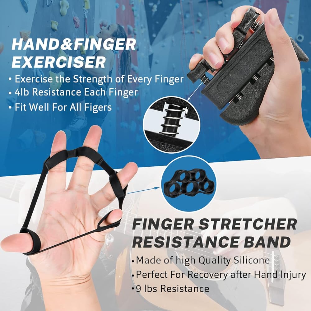 مقوي قبضة اليد من جونيكس مع عداد، مجموعة تدريب الساعد (5 عبوات)، مدرب قوة قبضة المقاومة قابل للتعديل، تمرين الإصبع/ممد، حلقة قبضة، كرة قبضة للتعافي والرياضيين