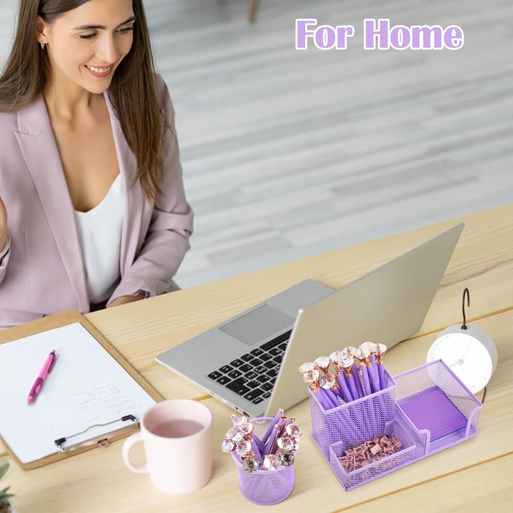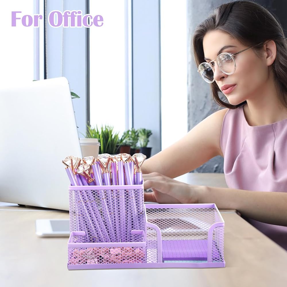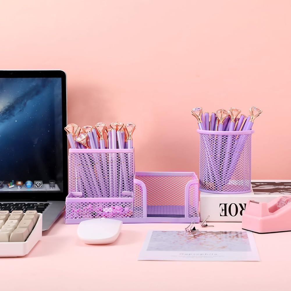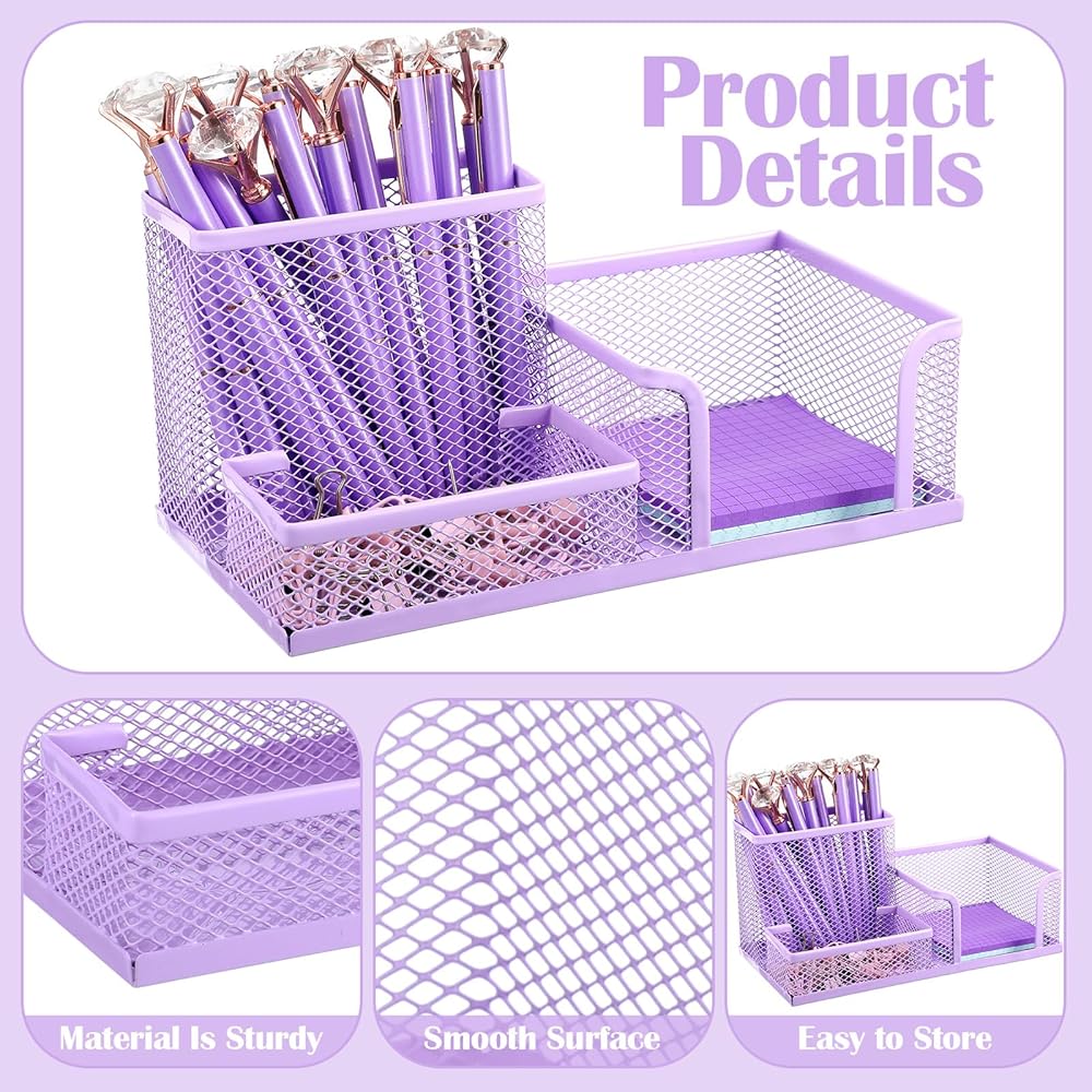 【علبة اللوازم المكتبية】سوف تحصل على حاملي أقلام شبكيين معدنيين متعددي الوظائف مع 3 مساحات وحامل قلم رصاص أرجواني مستدير كلاسيكي لتلبية احتياجاتك في الاستخدام متعدد السيناريوهات. يمكن استخدامها في المنازل والفصول الدراسية والمكاتب وما إلى ذلك.
