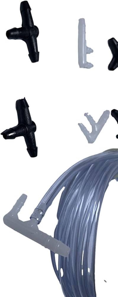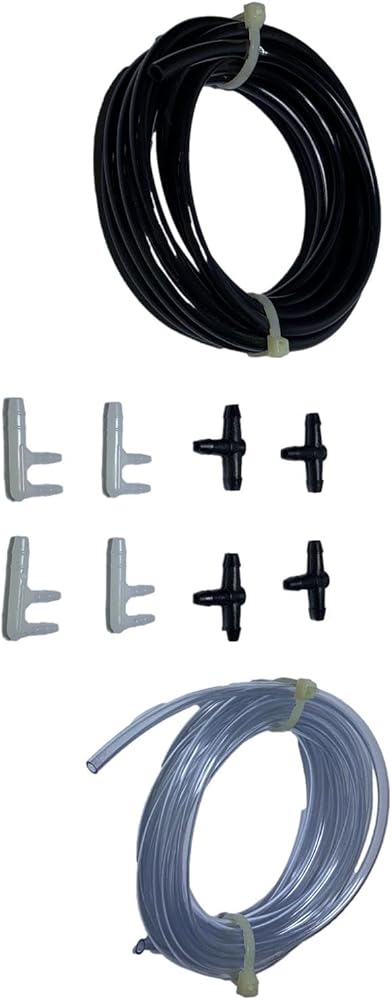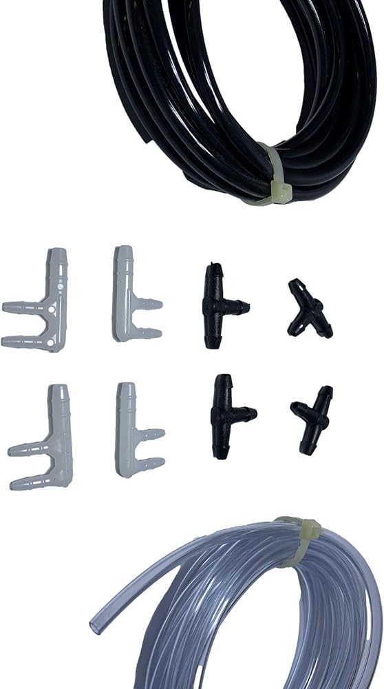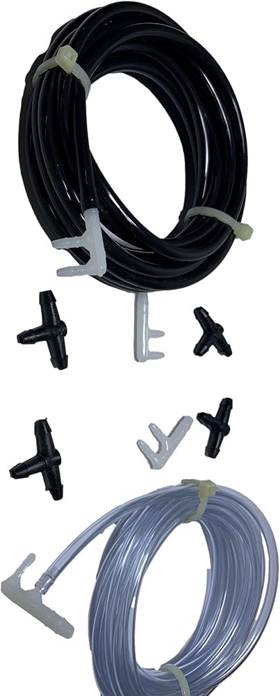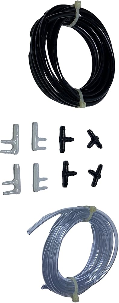 Package Contents: 1×4Mm Fluid Hose 3 meter black 1×3Mm Fluid Hose 3 meter transparent 4 × Type F connectors 4x T-connector