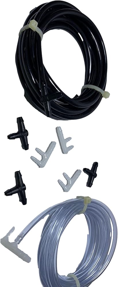 Feature: The windshield washer hose kit is made of high quality rubber, soft and elastic, strong and durable. The windshield washer hose kit can replace your aging hose, connect the car water pump to the windshield nozzle, and ensure smooth water spray and glass cleaning. Package Contents: 1×4Mm Fluid Hose 3 meter black 1×3Mm Fluid Hose 3 meter transparent 4 × Type F connectors 4x T-connector