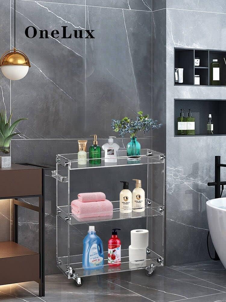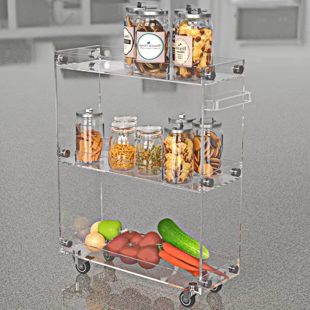 Small Space Solution: Acrylic Narrow Rolling Beverage Shelves or Trolley<br>All-Purpose used acrylic storage shelf.<br>Best Choice for your Bathroom, Kitchen, Dining room, Bar, Living room for Storage purpose. Neatly displayed and easy to locate.