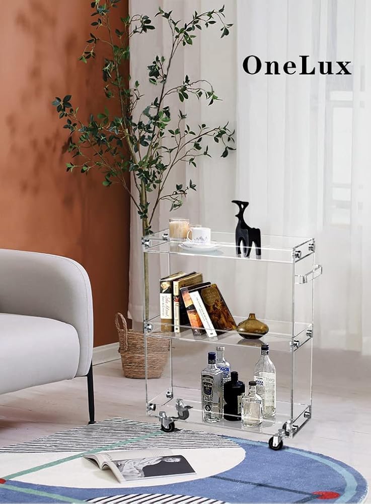 Small Space Solution: Acrylic Narrow Rolling Beverage Shelves or Trolley