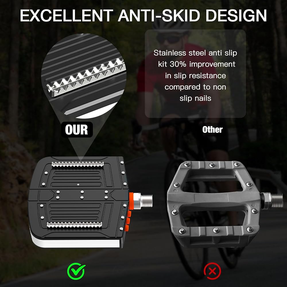 • تركيب سهل: يتم توصيل مفتاح ربط مفتوح 15 مم ومفتاح ربط سداسي 6 مم لتسهيل إزالة الدواسات وتركيبها، استخدم خيوط قياسية 9/16 بوصة، متوافقة مع معظم دراجات الطرق والدراجات الكهربائية والدراجات الجبلية والأطفال. دراجات.