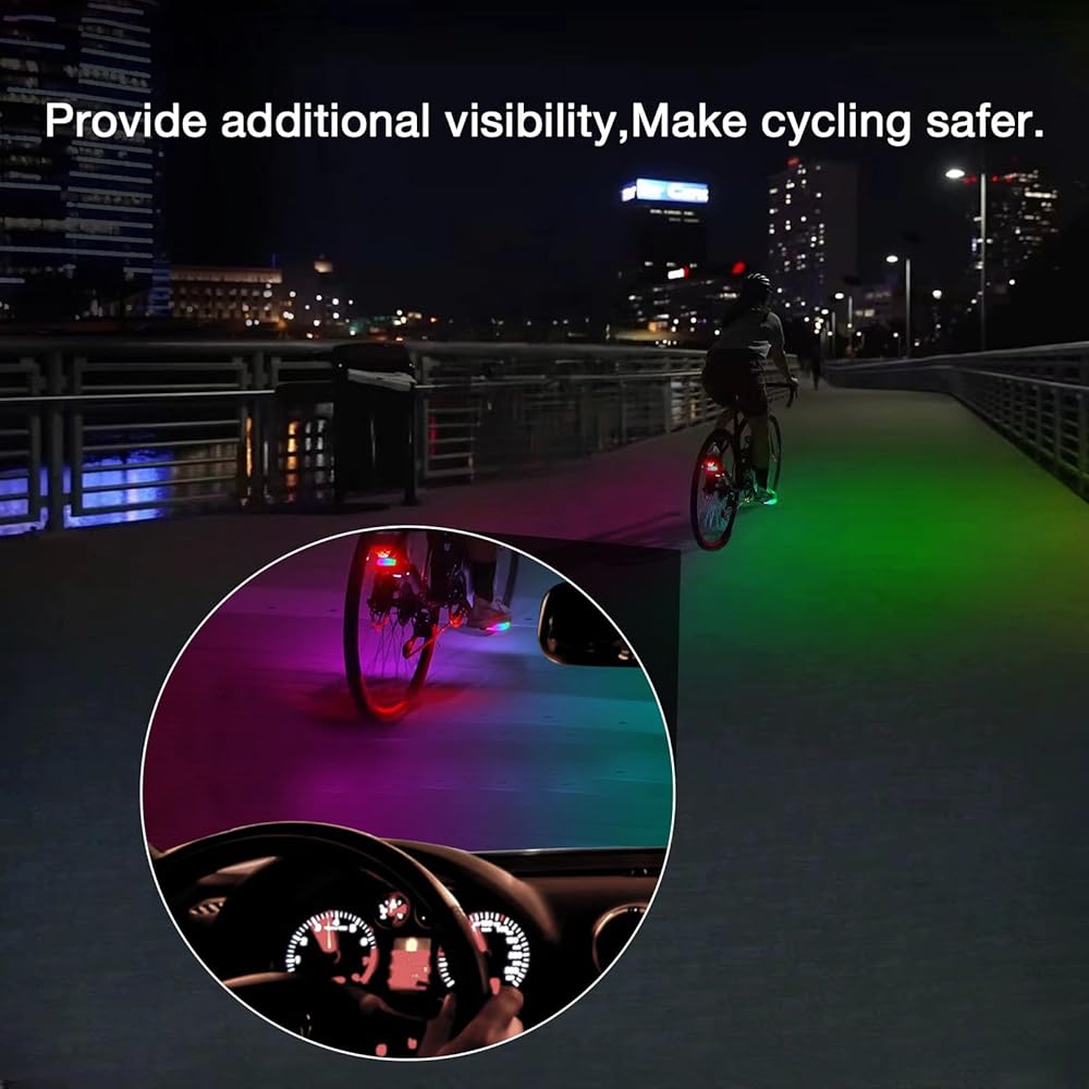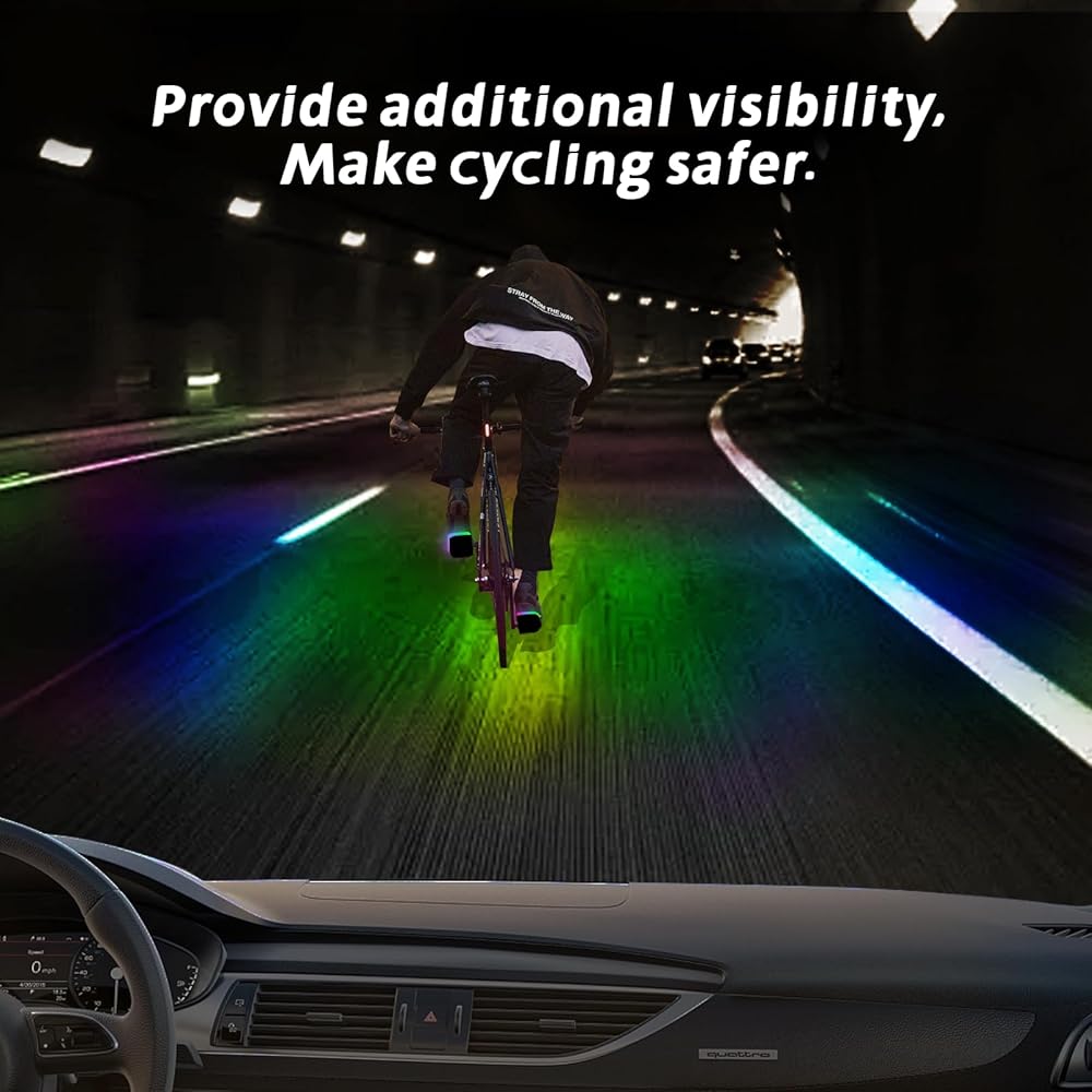 • 【تحكم ذكي】يمكن لتطبيق الهاتف المحمول وجهاز التحكم عن بعد التحكم في الإضاءة وإيقافها وضبط الوضع والسطوع. يمكن للأزرار الموجودة على الدواسة أيضًا التحكم في المفتاح ووضع المطاردة ووضع الموسيقى (يتطلب التشغيل والإيقاف الضغط لفترة طويلة على زر التشغيل/الإيقاف الموجود على دواسة القدم لمدة 5 ثوانٍ). يعمل مفتاح الكرة الدقيق المدمج على النوم تلقائيًا عندما تتوقف الدراجة لمدة 10 دقائق، ويقوم بتنشيط الأضواء تلقائيًا عند بدء الركوب.