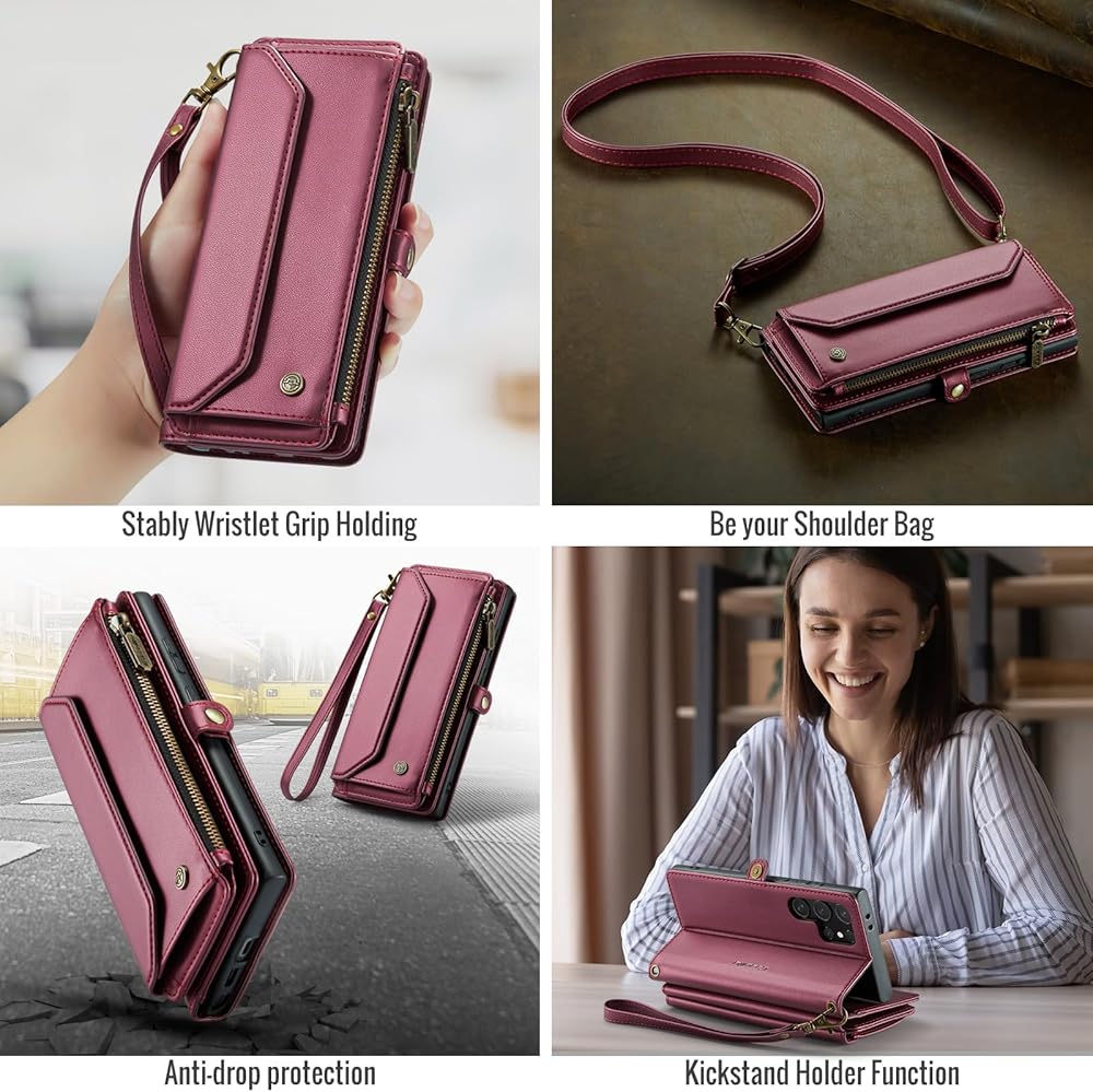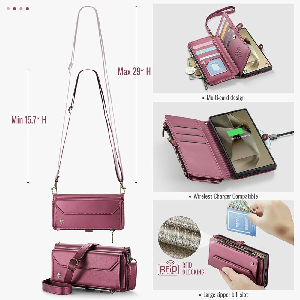 • وظيفة السحب المضادة للسرقة لبطاقة الائتمان: حقيبة بمقبض متعددة الوظائف + حافظة هاتف في واحدة مع وظيفة حجب rfid. مع أزرار صغيرة قابلة للطي تتضمن حامل البطاقة وجيب بسحاب وجزء غلاف الهاتف، تصميم الكل في واحد يسمح لك بحمل هذه الحافظة خارج المنزل دون حمل محفظتك الكبيرة، محفظة Samsung S24 Ultra هذه مناسبة للنساء والرجال.