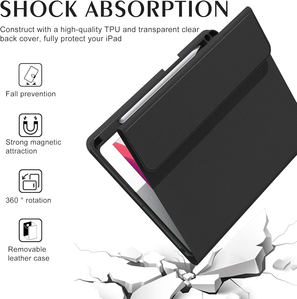 ✨ دعم BOBOLEE - تحتوي حافظة iPad 10.2 بوصة المتينة على غلاف داخلي ناعم من مادة TPU مع فتحات دقيقة. يدعم الغطاء وظائف النوم التلقائي عند إغلاق جهاز iPad أو فتحه. وتسمح لنا لوحة المفاتيح المغناطيسية القابلة للإزالة بتعديل رؤية الشاشة وموضع الكتابة. أي أسئلة أو احتياجات، يرجى الاتصال بنا في أسرع وقت ممكن. يوفر لك BOBOLEE اتصالاً مباشرًا بعد الخدمة على مدار 24 ساعة