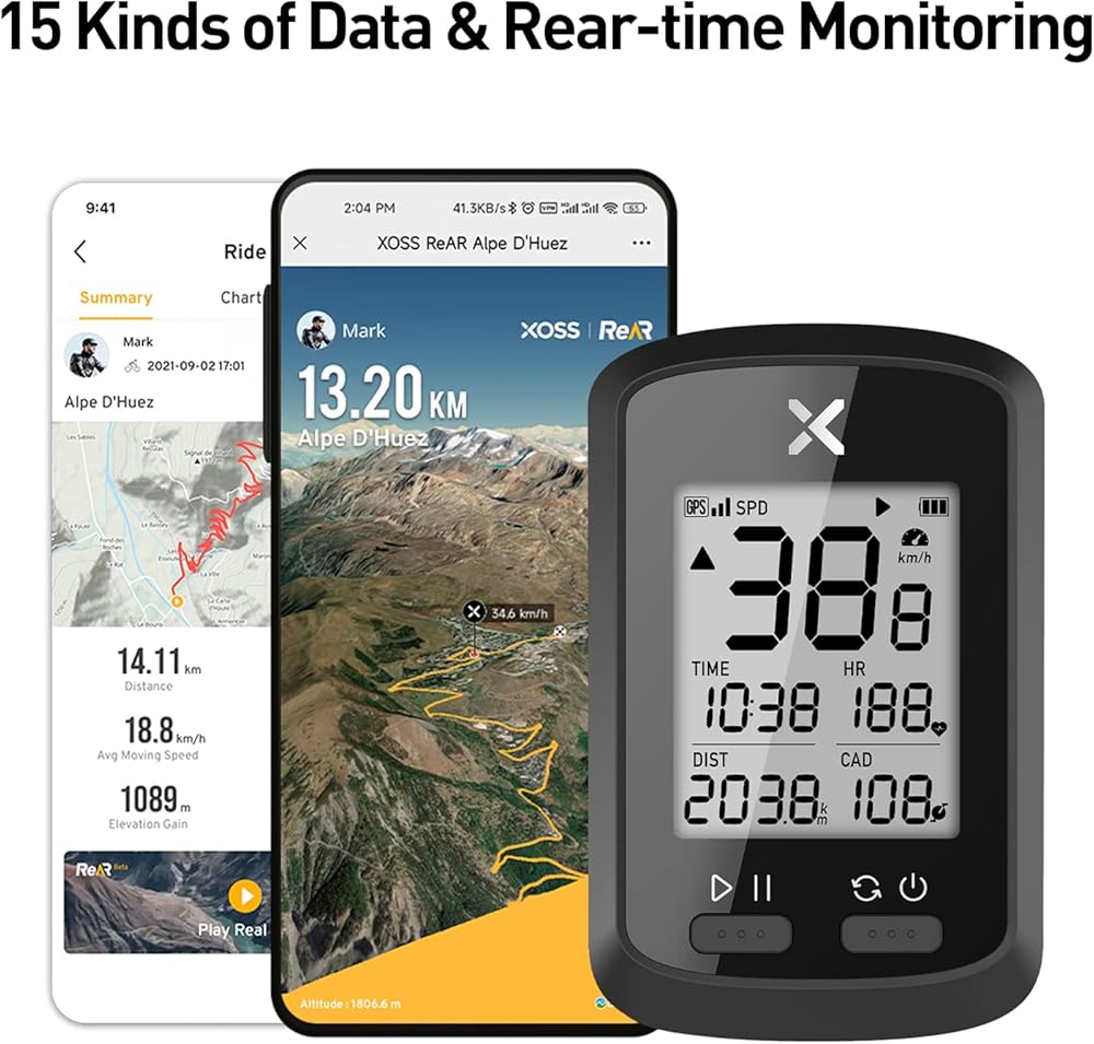 【كمبيوتر ركوب الدراجات عالي التقنية】 يحتوي كمبيوتر الدراجة اللاسلكي XOSS G+ على شريحة GPS مدمجة عالية الحساسية، والتي تسمح لنظام تحديد موقع كمبيوتر الدراجة بالاتصال بـ 3 اتصالات عبر الأقمار الصناعية: GPS، GLONASS، Galileo. فهو لا يحدد موقع قيادتك بدقة فحسب، بل يقوم أيضًا بتسجيل مسار الركوب تلقائيًا.