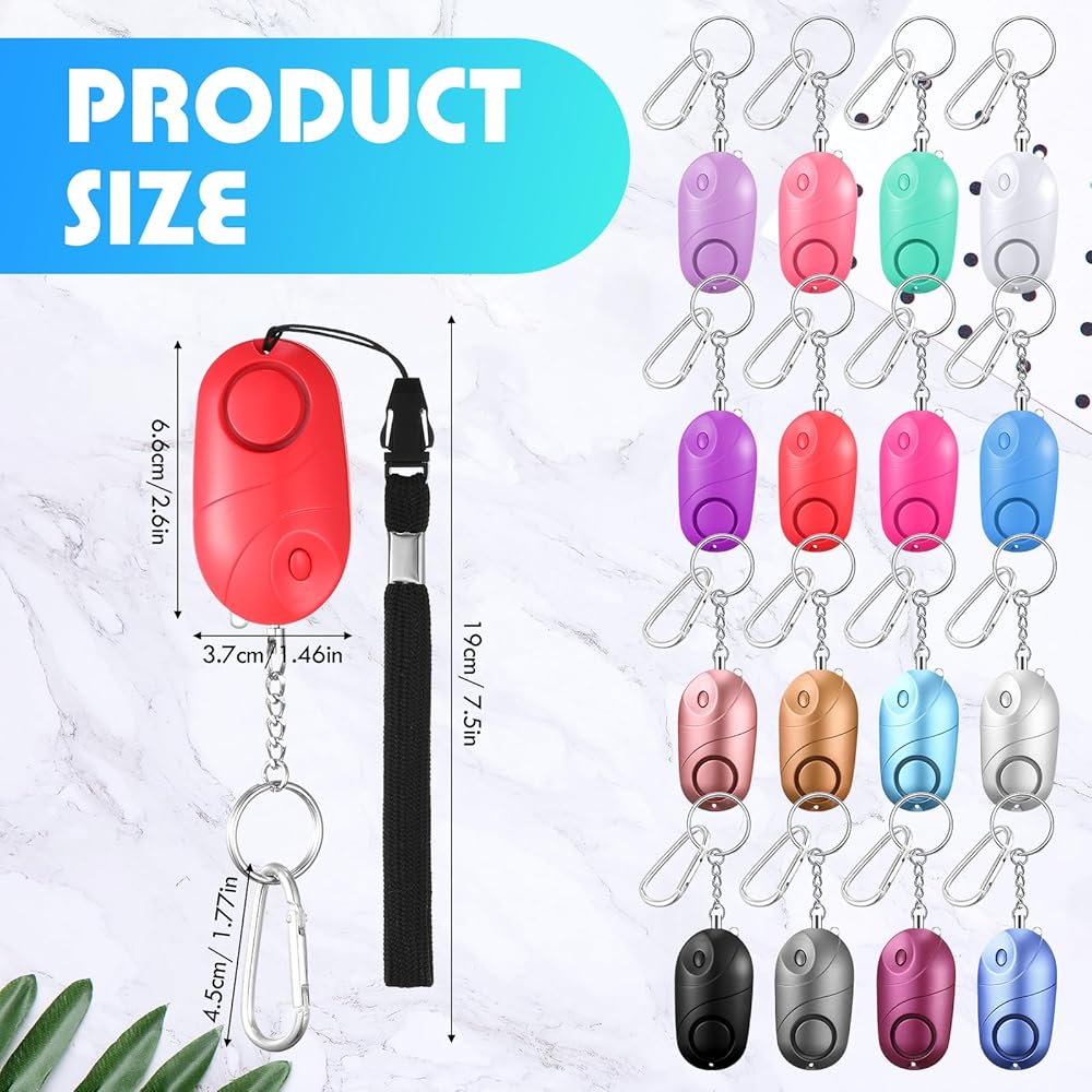 • Nice Combination: you will receive 16 pieces of safe personal alarm with pull pin bulk, with 16 pieces of aluminum D shape buckles and user's guide, the alarm comes in 16 different colors. Enough quantity and bright different colors will match your various dress colors and draw your eyes to quickly find the alarm