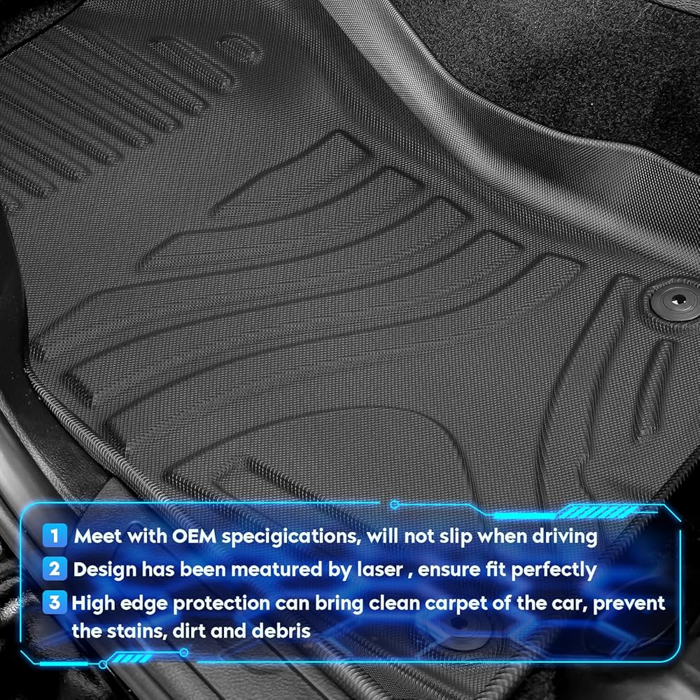Floor mats are perfectly custom cut with vacuum forming technology to ensure safe driving. It does not interfere with the gas pedal, brakes or seat tracks.