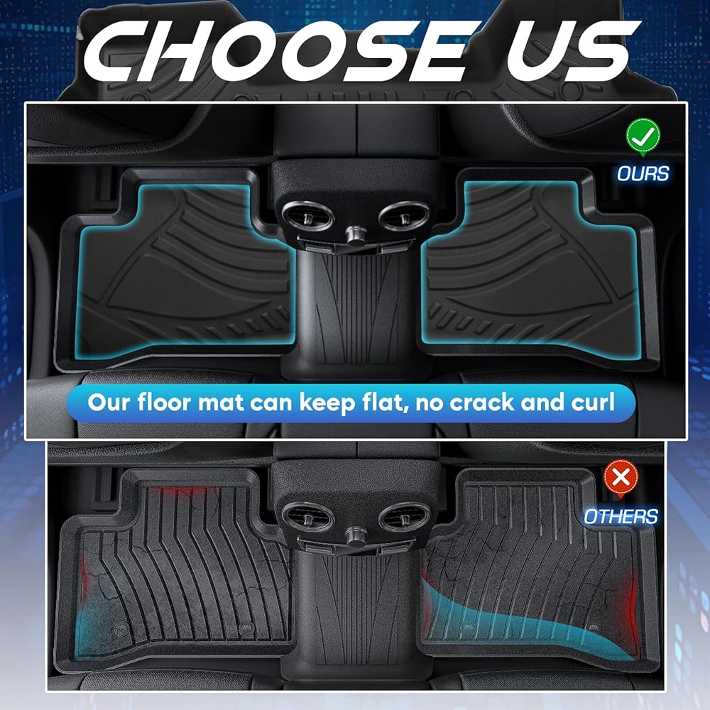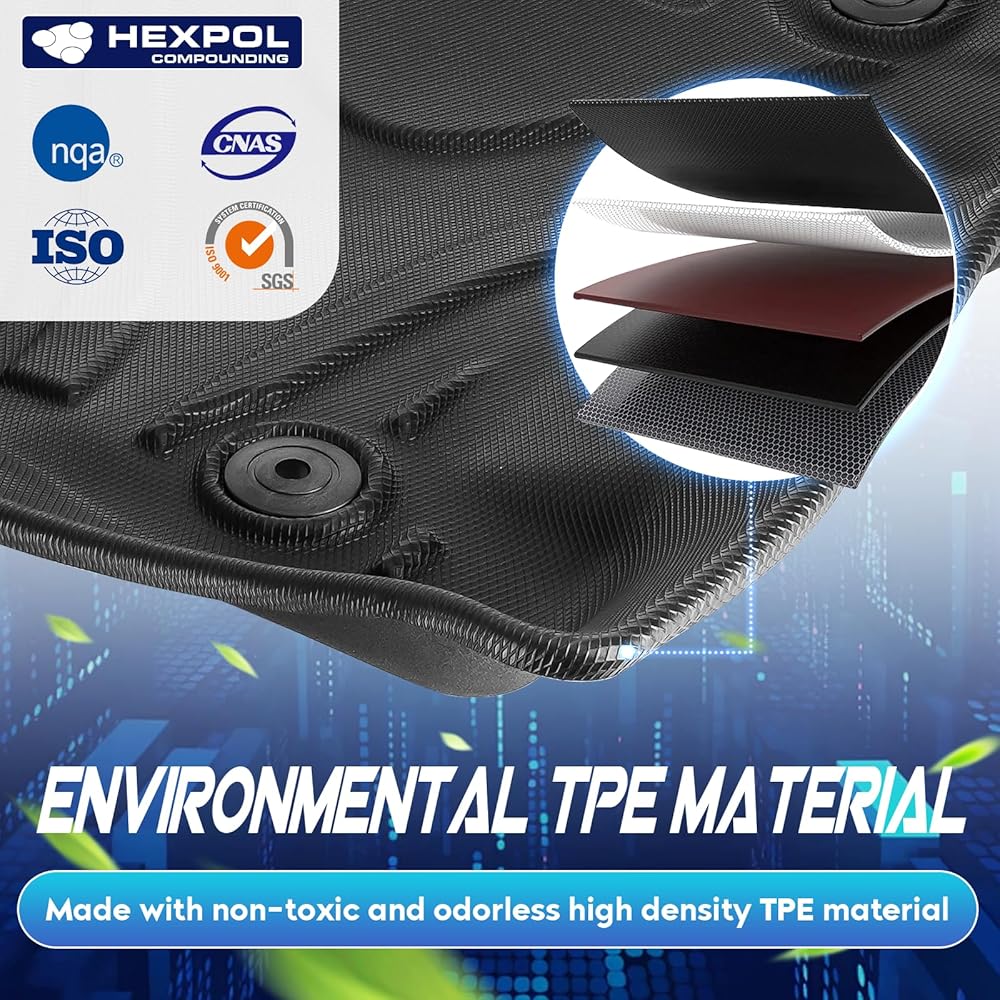 【Tough and Durable】Our floor mats are made from non-toxic, odorless TPE. The high-strength TPE material not only has good touch and weather, abrasion and temperature resistance, but also maintains flexibility.