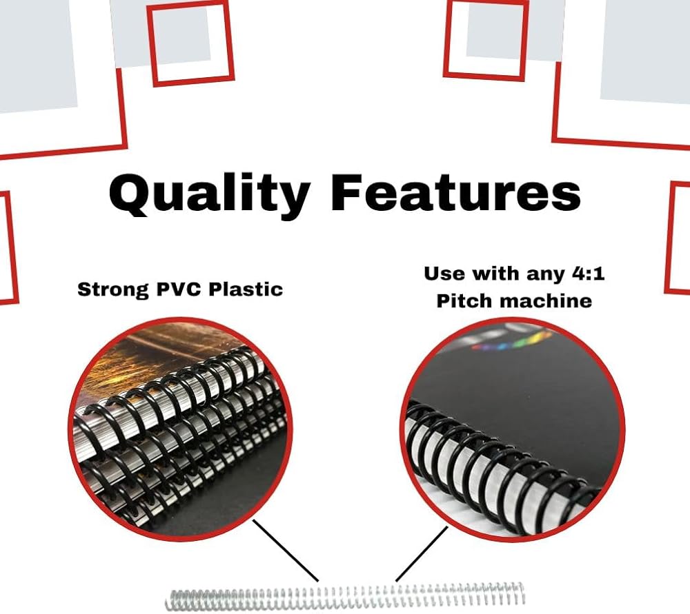 - استخدم أي آلة - يمكن استخدام ملفات الربط الحلزونية 4:1 هذه مع أي آلات ربط لفائف حلزونية 4:1