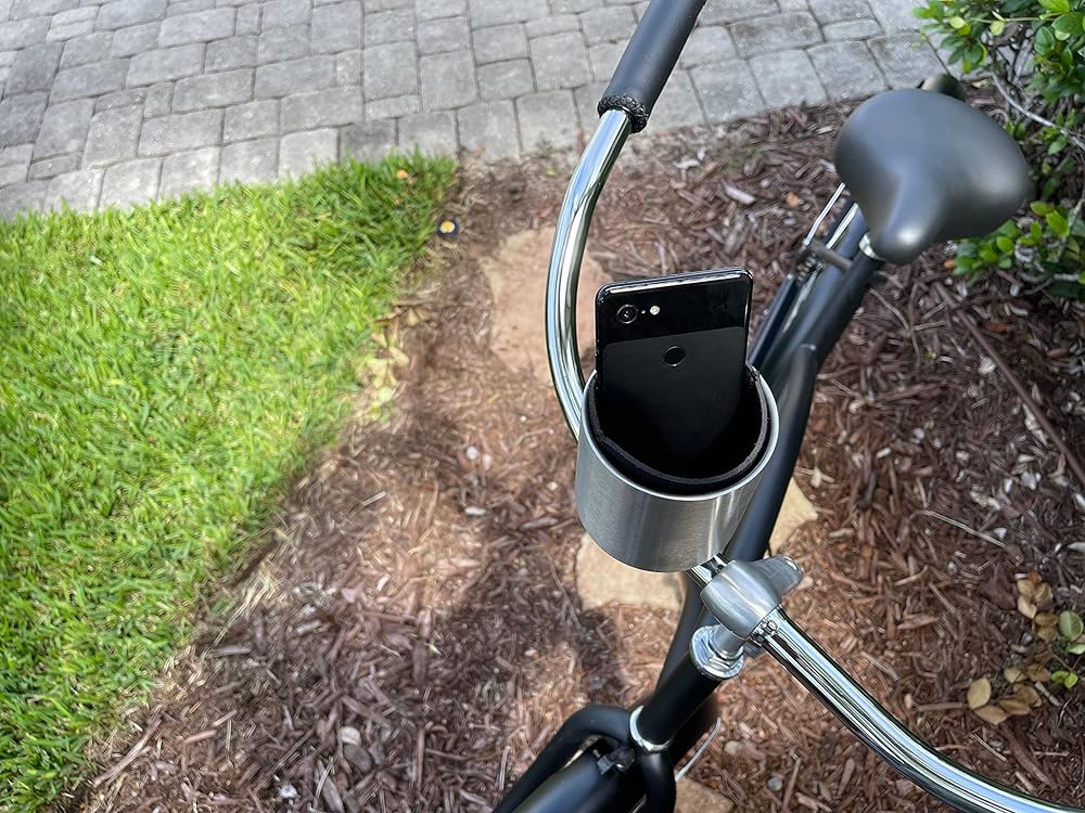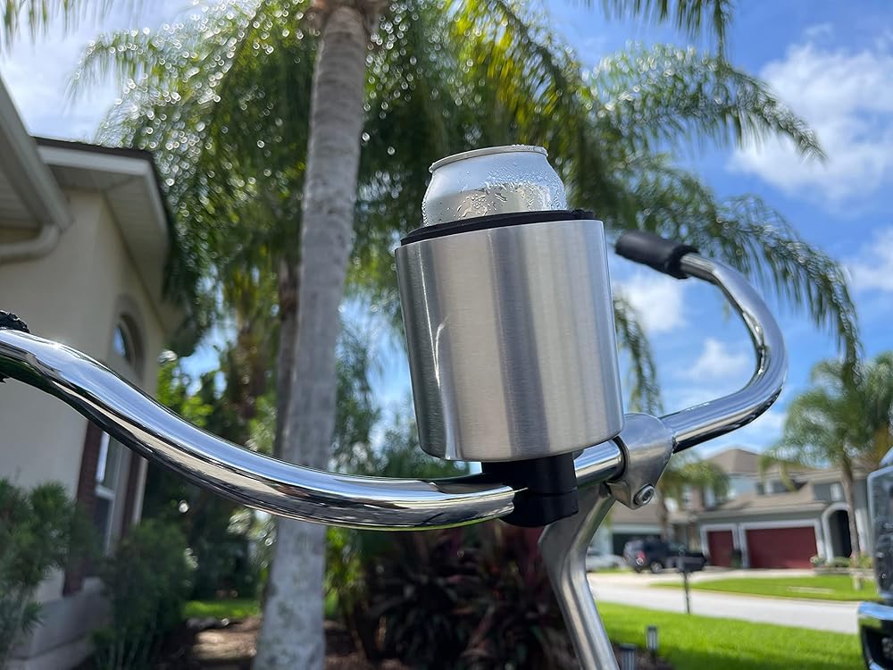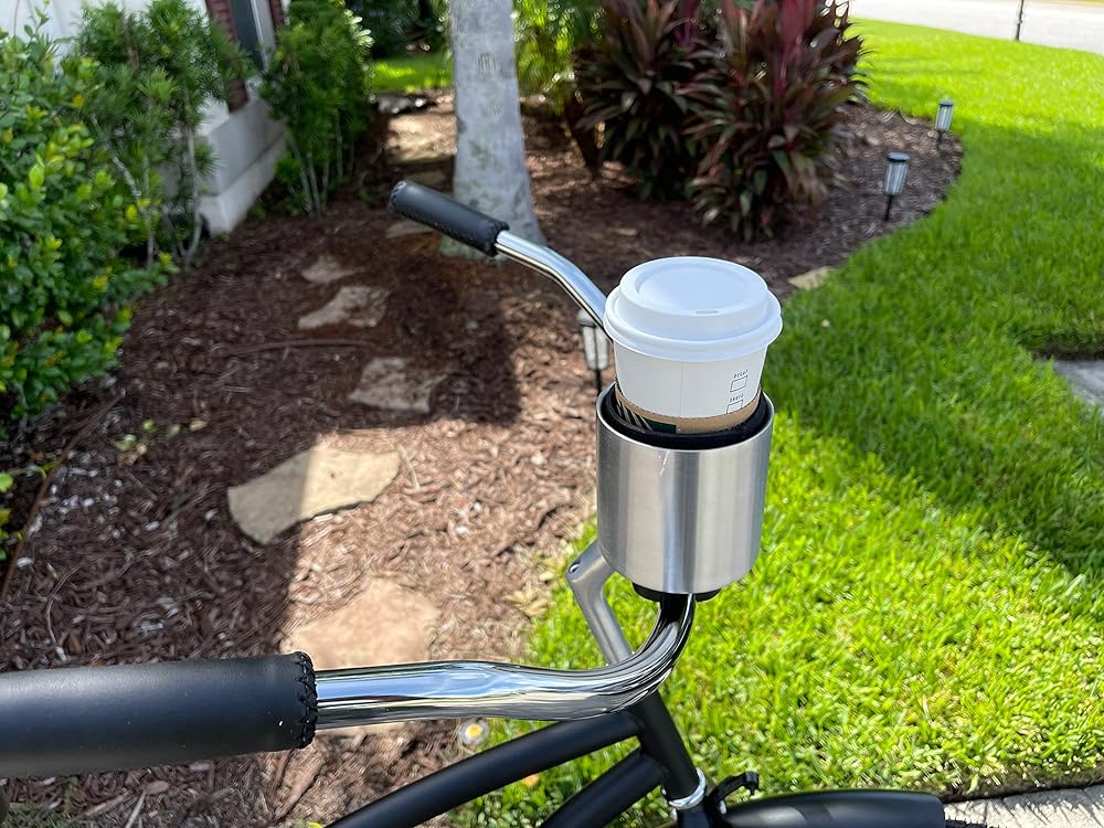Introducing the ultimate handlebar mounted bike cup holder for your cruiser, perfect for keeping your drinks within reach while on your next ride. Our bicycle cup holder is designed to securely fit onto the handlebars of your e-bike, bicycle, scooter, or beach cruiser. With it's large size, it can accommodate many shapes and sizes of cups, including coffee cups, water bottles and tumblers. The sturdy construction ensures your beverage stays in place, even on bumpy roads. Whether you're on a long ride or just commuting to work, our bike cup holder is the perfect solution for hydration on the go. The patented Kroozie 2.0 Base cup holder attachment is easy to install and fits 5/8 inch to1-3/8 inch horizontal bars, making it a must-have accessory for any rider. With the added convenience of a cupholder bike, you'll never have to worry about juggling your drink while trying to steer. Take your exercise routine to the next level with our exercise bike cup holder. Whether you're riding an indoor bike or a treadmill, our water bottle holder for the treadmill keeps your drink within reach, so you can stay hydrated and focused on your workout. The treadmill water bottle holder is also a great accessory for outdoor activities like hiking and camping. For those who like to enjoy a cold drink on their rides, our bicycle beer holder is the perfect accessory. Whether you're riding a beach cruiser or a regular bike, our bike handlebar cup holder makes it easy to bring your favorite beverage with you. The bike cup holder is also perfect for keeping your coffee warm on chilly mornings. The Kroozie XL bike handlebar cup holder for cruisers is a must-have accessory for all cyclists, scooter riders, and fitness enthusiasts. With its large size, sturdy construction, and easy installation, this bike cup holder is the perfect solution for keeping your drinks within reach. So, upgrade your ride today and enjoy a more convenient and hydrated journey.