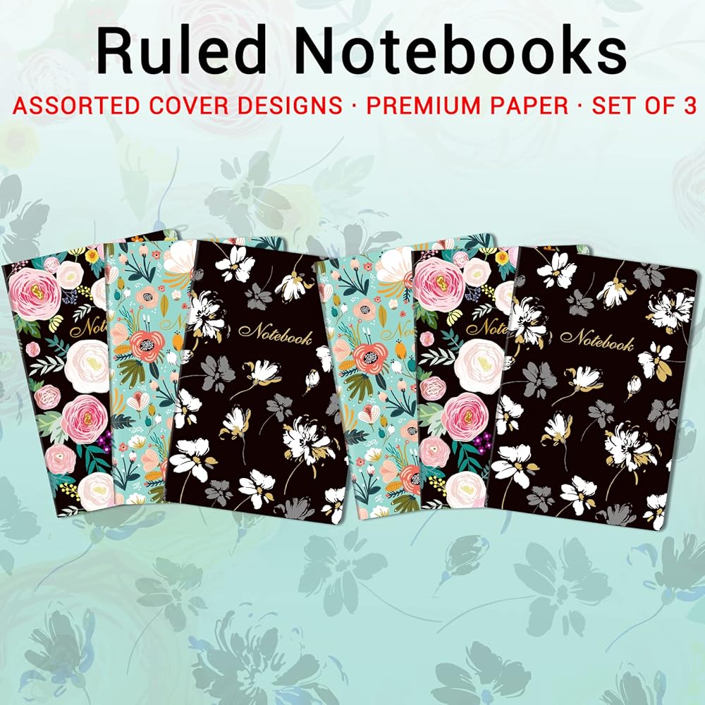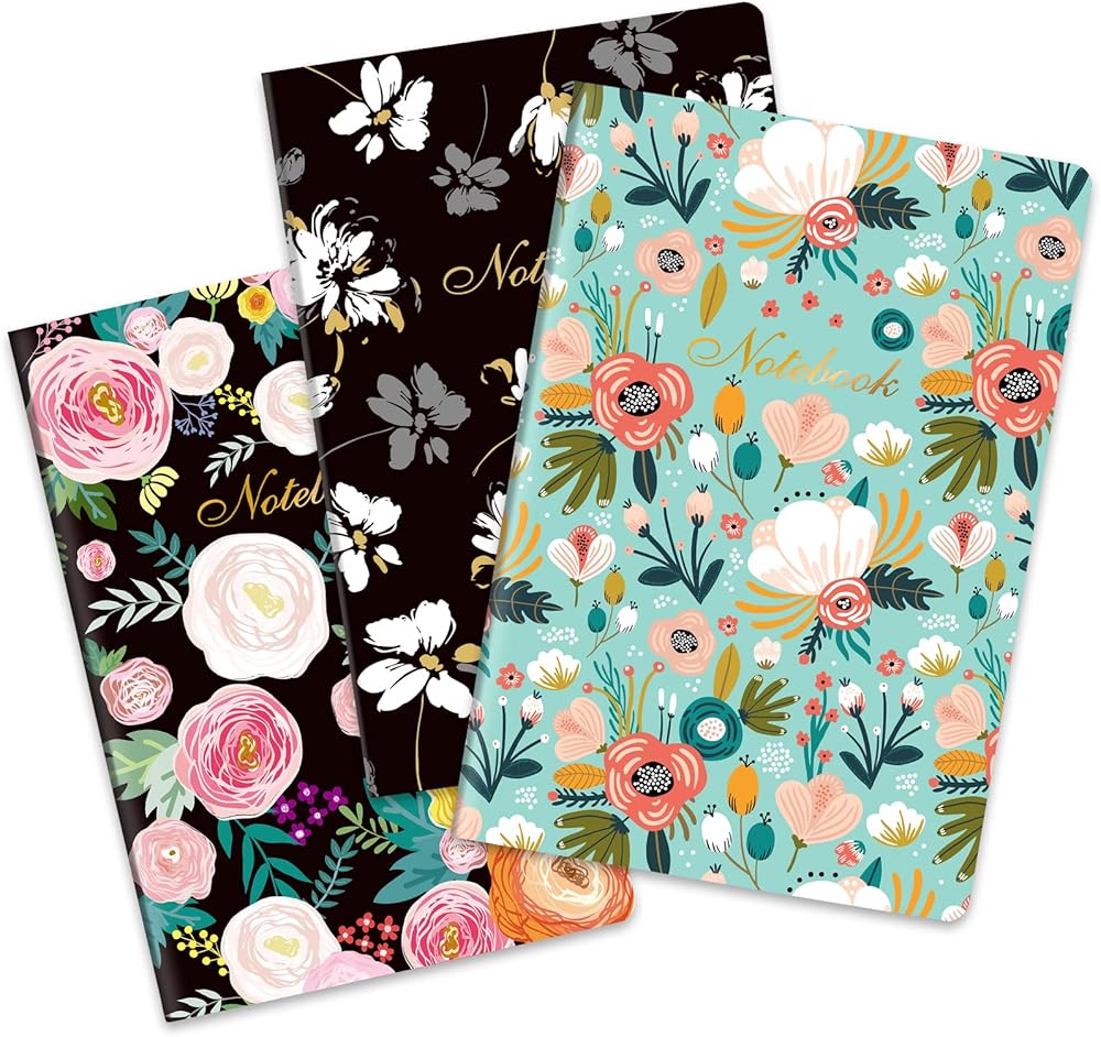 دفتر ملاحظات ذو 3 ألوان - غطاء ناعم بأزهار مختلفة وتصميم حافة فيليه، يمنحك تجربة تسوق ممتعة. يمكن أن يوفر لك الورق عالي الجودة تجربة كتابة أفضل من ذي قبل. تم تصميم دفاتر الملاحظات الكلاسيكية اللطيفة الخاصة بنا بحيث تكون مسطحة بزاوية 180 درجة على مجموعة متنوعة من الأسطح مما يجعل من السهل الكتابة لمستخدمي اليد اليمنى واليسرى.