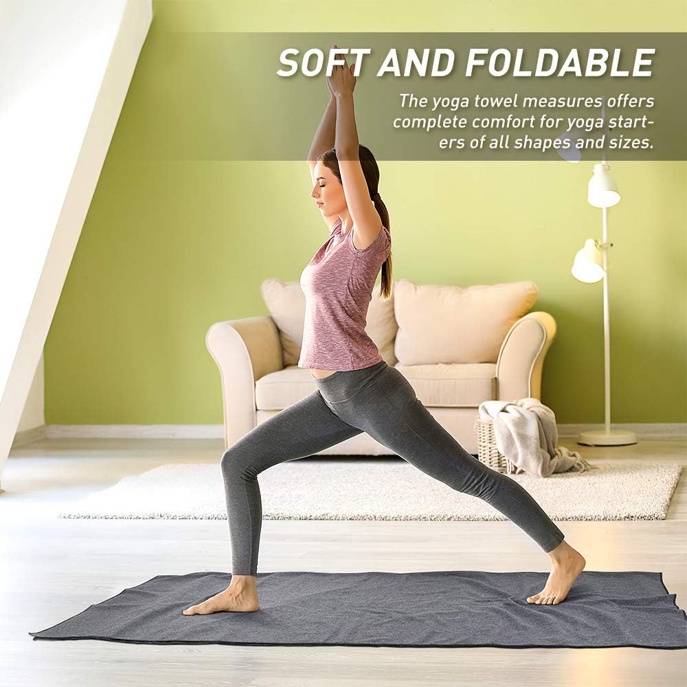 منشفة يوجا JBM مقاس 72 بوصة × 26 بوصة، منشفة يوجا ناعمة غير قابلة للانزلاق، بطانية يوجا ماصة للعرق، منشفة بساط يوجا مطوية لليوجا والتأمل والبيلاتيس والتمرين - مقاس واحد يناسب الجميع (رمادي، منشفة يوجا)