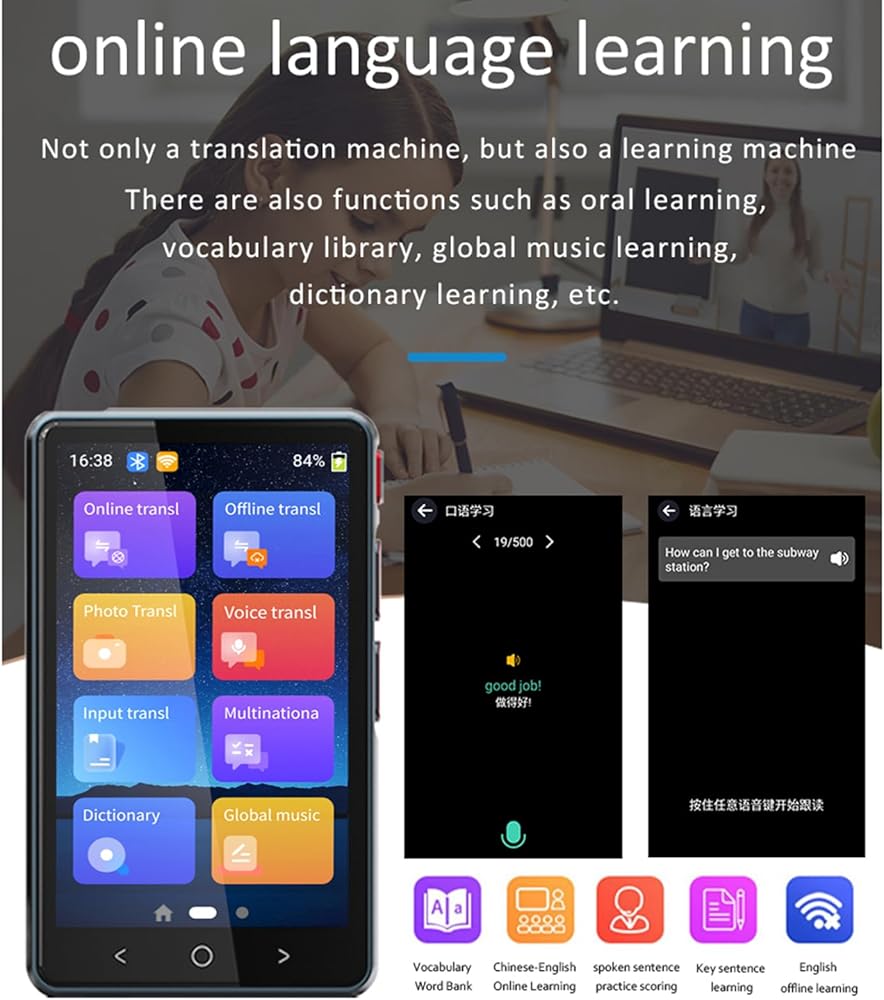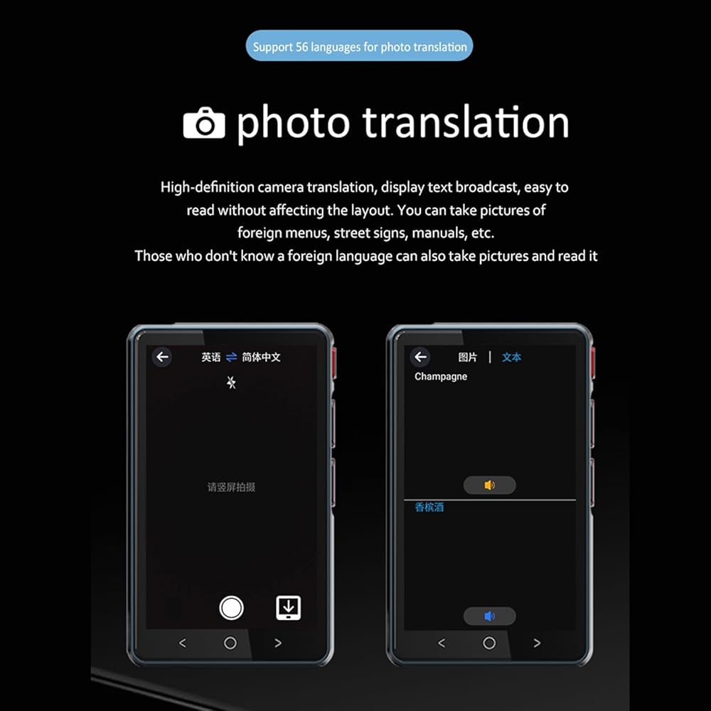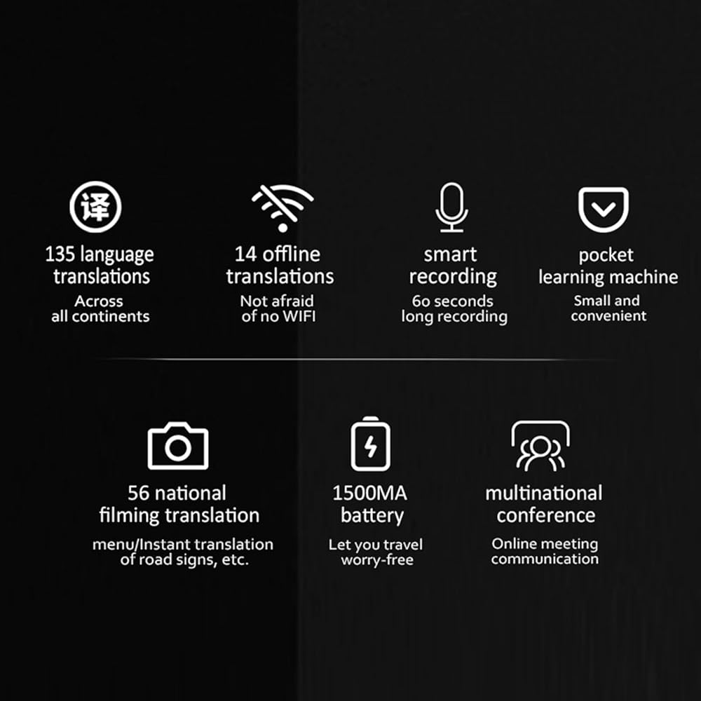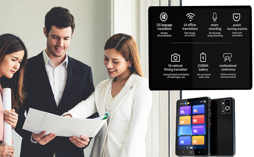 يجعل هذا المترجم المحمول التواصل عبر اللغات أسهل وأكثر ملاءمة. وقت الاستجابة أقل من 0.5 ثانية (أسرع من المترجمين البشريين)؛ فهو دقيق للغاية في ترجمة الجمل المعقدة، حيث بلغت دقته المختبرة 98%. توفر شاشة TFT (IPS) الملونة عالية الحساسية التي تعمل باللمس مقاس 4 بوصات إمكانية القراءة الكاملة من الكلام إلى النص.