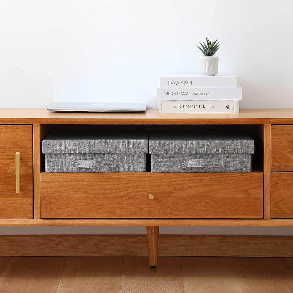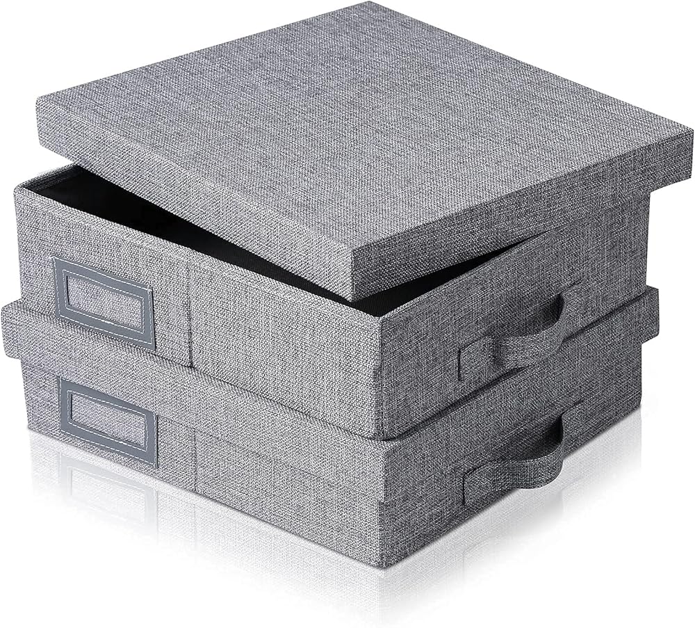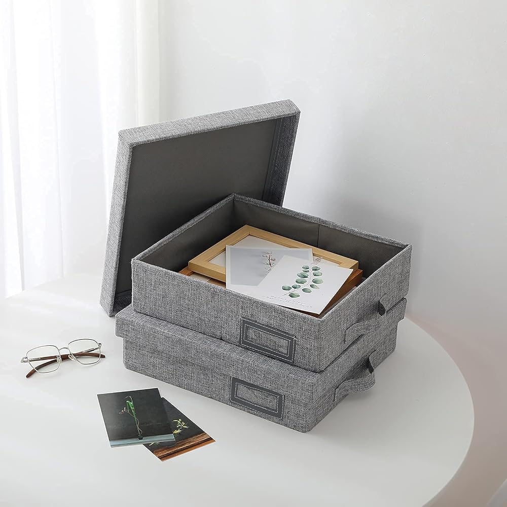 Linen Scrapbook Storage Box,14.6 '' x 13 '' x 4 '',Document Letter Box, Photo Boxes Storage ,Gray (1-pack)