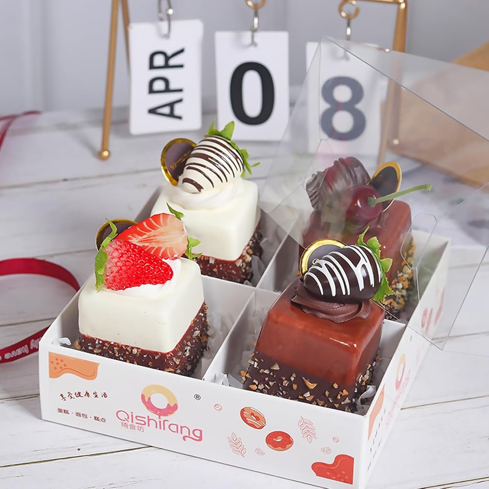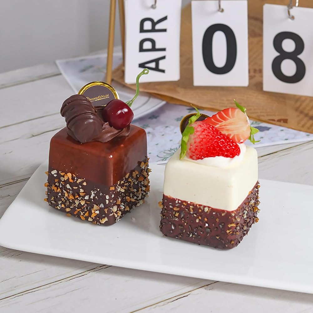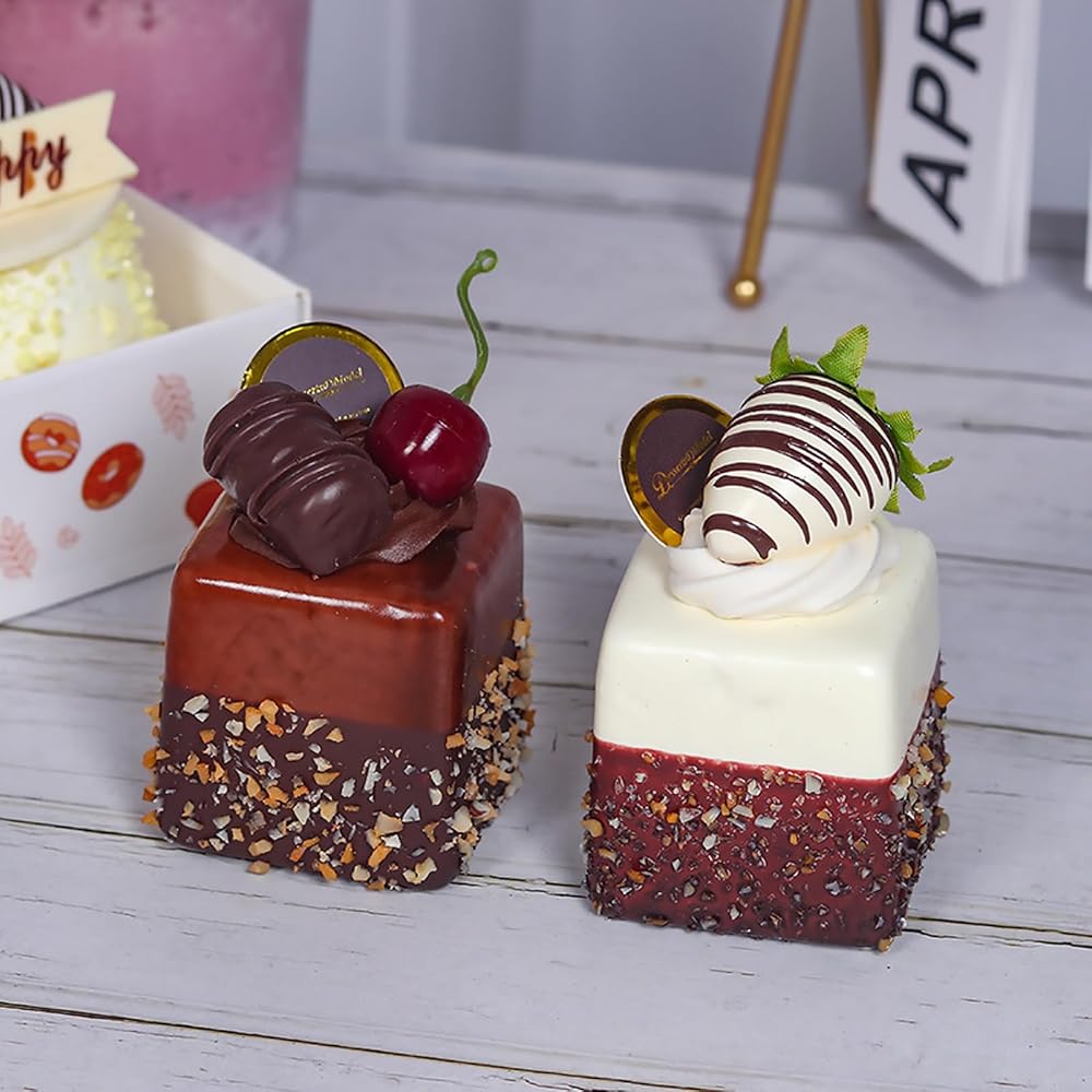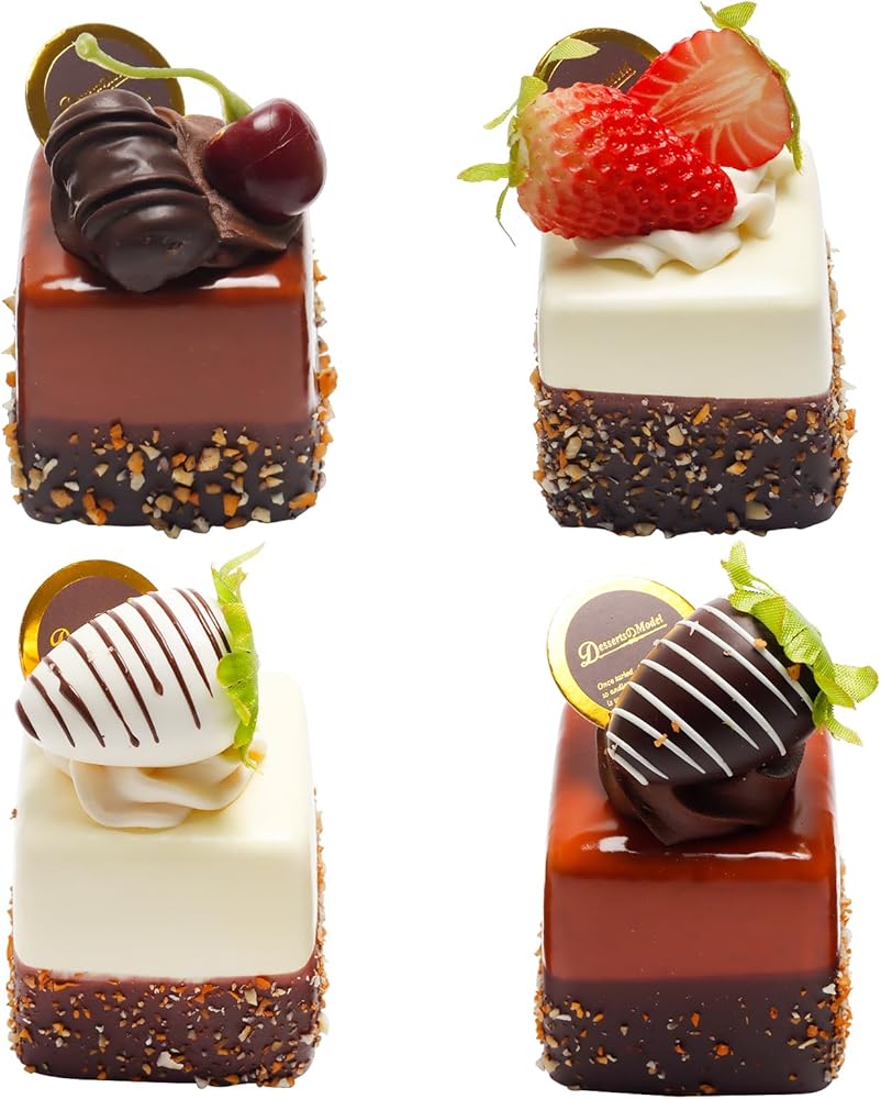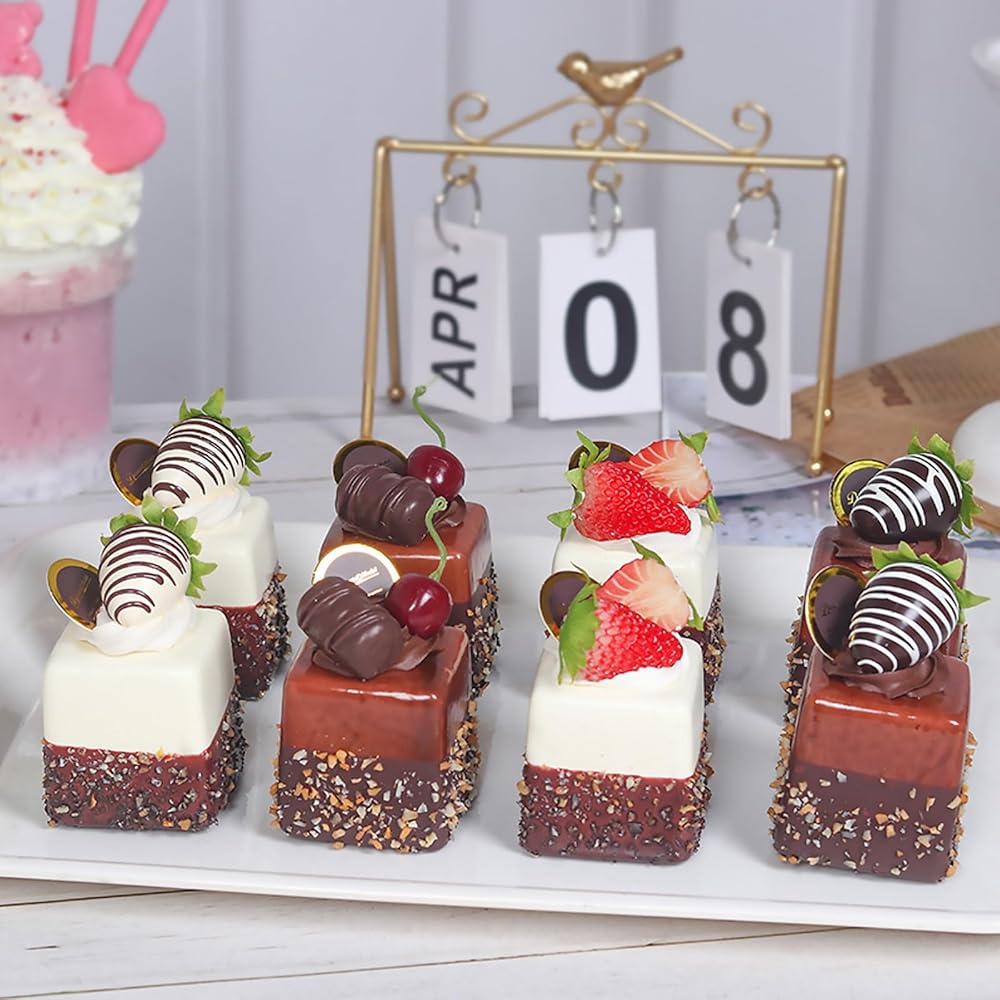 4 قطع من الكعك الاصطناعي الاصطناعي المختلط، نموذج تزيين الطعام، نموذج تزيين الطعام، دعائم صور المطبخ، كعكة مربعة