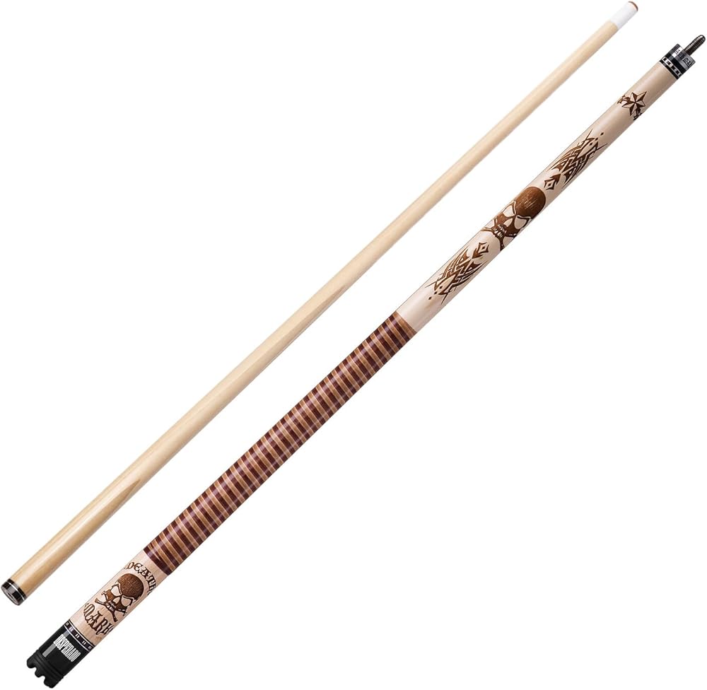 The Viper Desperado 58-Inch, 2-Piece Billiard Cue is constructed from quality hard Canadian Maple wood. It features intricate laser engraved artwork and 9 coats of varnish to prevent warpage. Several wood and onyx inlays accented by stainless steel rings along the forearm and sleeve add to the uniqueness and overall design. Featuring lightweight stainless steel joints which help provide consistent feedback during play and includes a removable scuffer. Simply twist the scuffer off and use it to shape the tip of your cue, allowing for enhanced chalk retention. It's available in 18-21 ounce cue weights, offering a customizable assortment. Each billiard cue is finished off with a 13mm Le Pro leather tip, 100% genuine leather wrap and includes a lifetime manufacturer limited warranty.