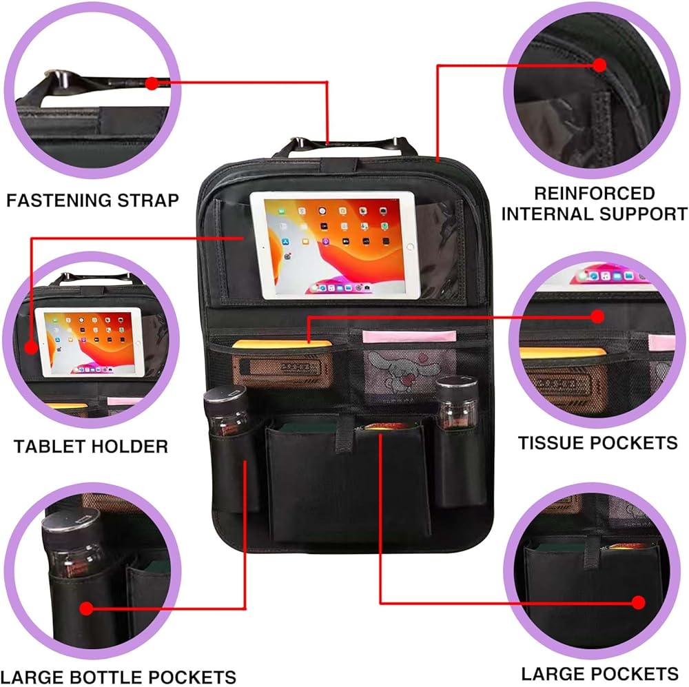 【تنظيم أغراضك】---تم تصميم منظم المقعد الخلفي للسيارة هذا لتخزين أغراضك أو أغراضك بشكل مثالي ومنحك بيئة منظمة وواسعة داخل السيارة. تحتوي على 8 جيوب لتخزين الزجاجات أو الهواتف أو بنك الطاقة والأجهزة اللوحية والمجلات والوجبات الخفيفة والألعاب وما إلى ذلك.