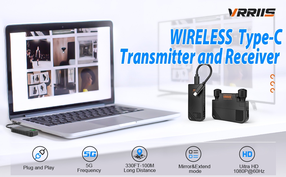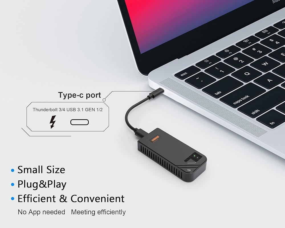 جهاز إرسال واستقبال لاسلكي من النوع C، نطاق إشارة 5 جيجا هرتز 330 قدمًا، مجموعة موسع HDMI لاسلكية USB C تدعم 1080 بكسل عند 60 هرتز، من الكمبيوتر المحمول، صب الهاتف/النسخ المتطابق إلى الشاشة/التلفزيون، للمكتب والاجتماعات والمحاضرات