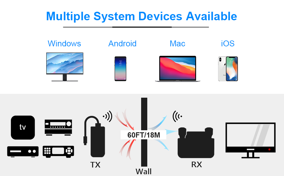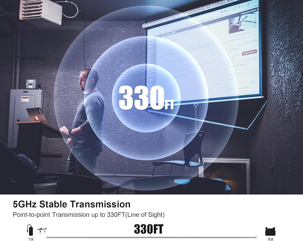 💻【نقل ثابت بتردد 5 جيجا هرتز، يصل إلى 330 قدمًا】هوائي مدمج بموسع HDMI اللاسلكي، نقل ثابت بتردد 5 جيجا هرتز، نقل من نقطة إلى نقطة يصل إلى 330 قدمًا (خط الرؤية)، صب الشاشة اللاسلكية لمسافة كمبيوتر Windows تصل إلى 132 قدمًا؛ يمكن أن يصل صب الشاشة اللاسلكية عبر مسافة الجدار إلى 60 قدمًا.