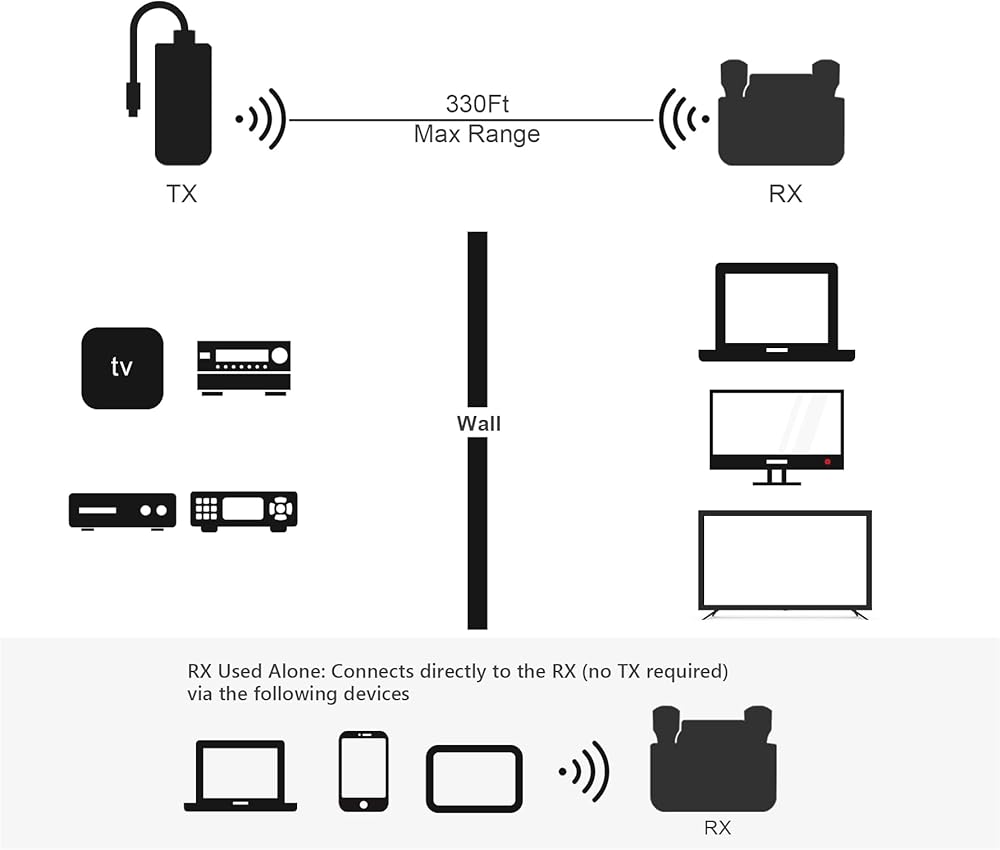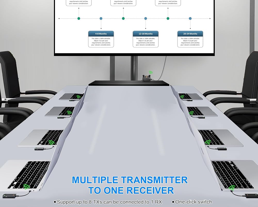 💻【جهاز إرسال متعدد إلى جهاز استقبال واحد】يمكن لجهاز إرسال واستقبال الفيديو اللاسلكي من النوع C توصيل 8 أجهزة إرسال بجهاز استقبال واحد في نفس الوقت، والتبديل بمفتاح واحد (يرجى إقران أجهزة الإرسال الأخرى قبل التبديل). *يمكن توصيل RX بالهاتف/الكمبيوتر المحمول/الكمبيوتر اللوحي للاستخدام بمفرده (لا يتطلب TX).