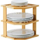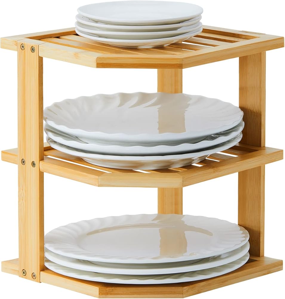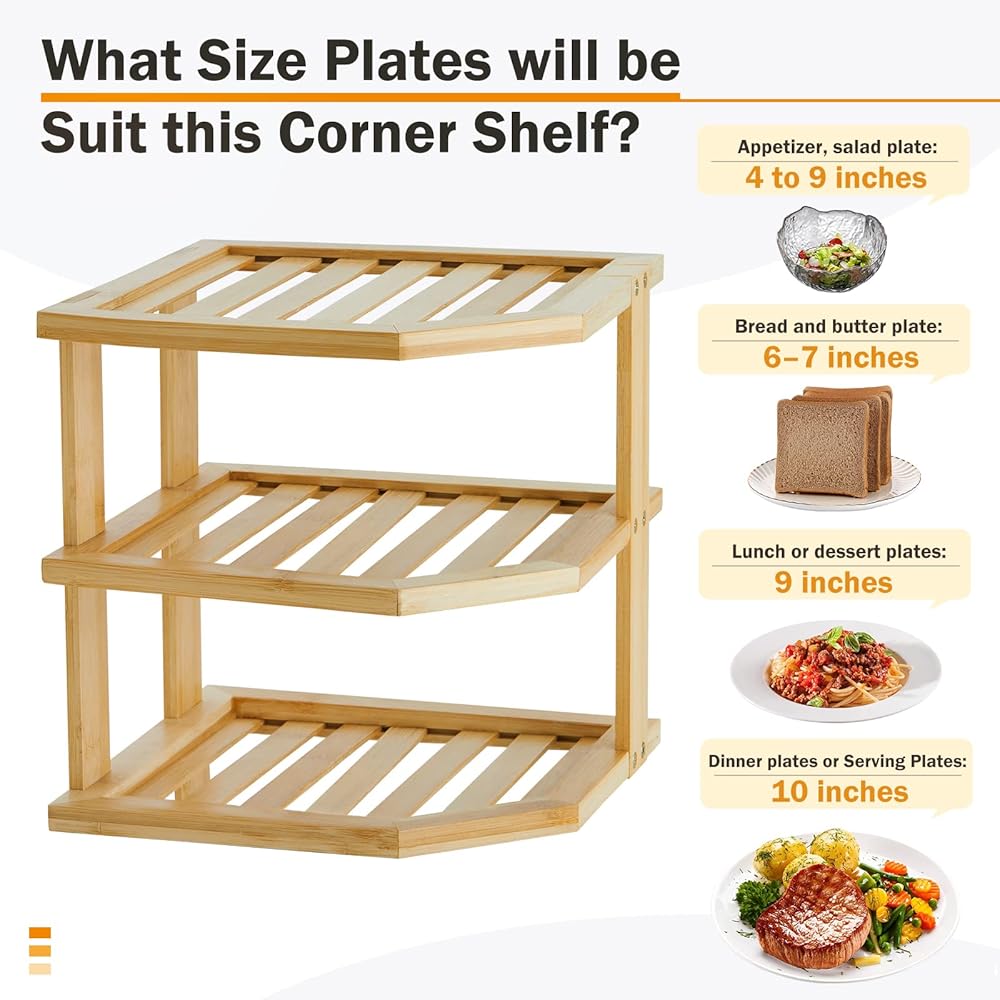 Plate Organizer for Cabinet - A Small and Light Kitchen corner shelf is helpful for the well use of space in your kitchen. It is made of 3-tier pantry shelves, makes easy for you to palce the dishes,bowls,spoons or any other little kitchenware or kitchen supplies. With the netural color of the bamboo, this bamboo organizer will also makes your kitchen be tidy and beautiful.