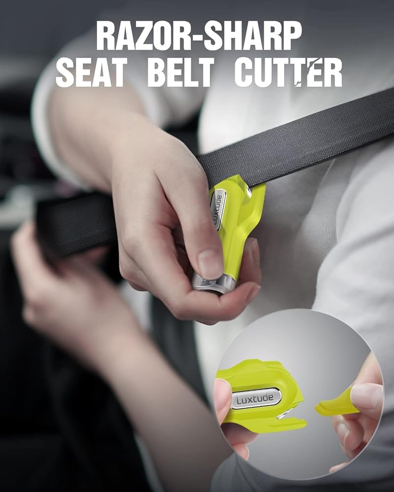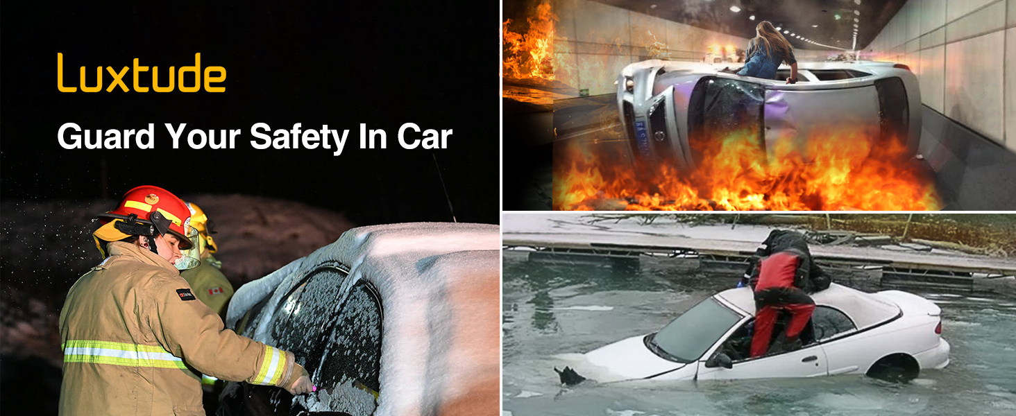 الهروب تحت الماء: تصميم فريد مزود بنابض يجعل أداة أمان السيارة Luxtude سهلة لكسر النافذة حتى تحت الماء، لا خوف من الإزعاج بسبب ضغط الماء بالمقارنة مع مطارق الأمان التقليدية، من السهل الهروب من السيارة المغمورة.