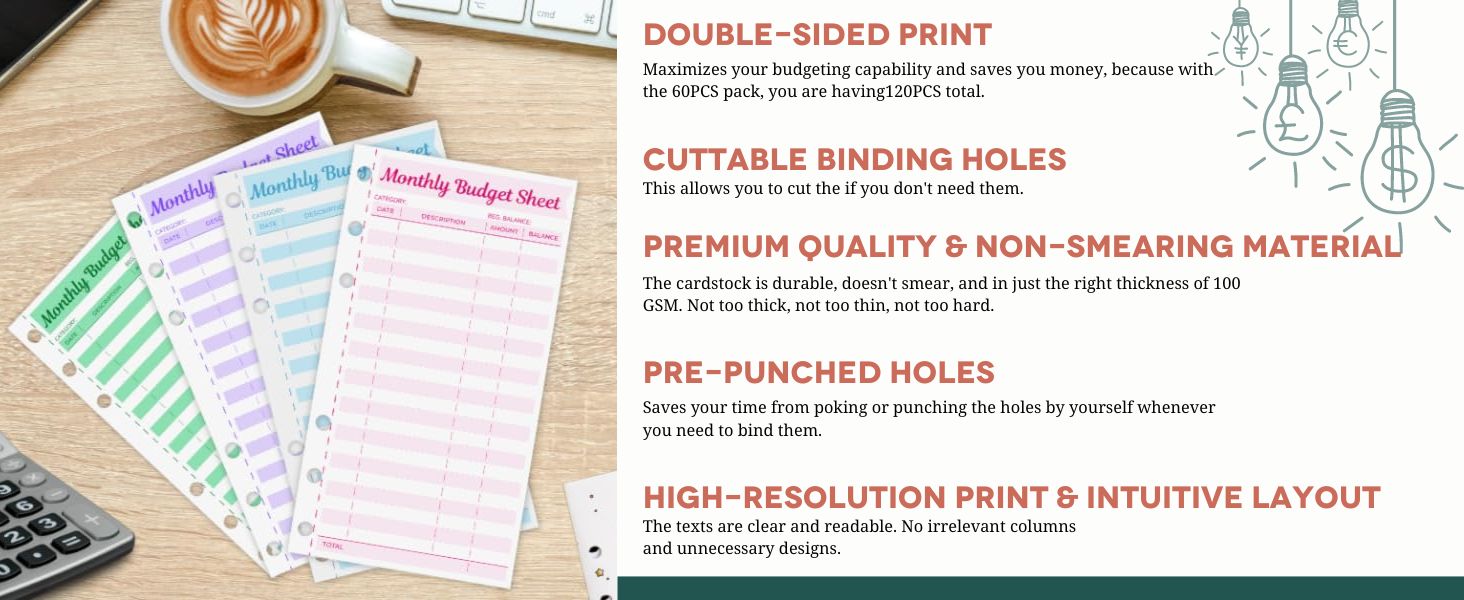 طباعة على الوجهين - لقد قمنا بتعظيم كل جانب من أوراق الميزانية مقاس a6 هذه بحيث يكون لديك مساحة كبيرة لتخصيص كل أموالك.