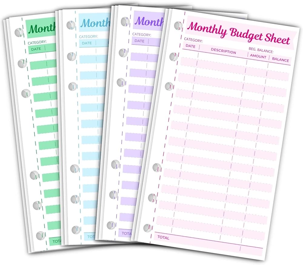 4 ألوان جميلة لكل مجموعة - يجب أن تكون الميزانية ممتعة لذلك سيكون لديك اللون الأزرق والوردي والأخضر والأرجواني من حشوات مجلد الميزانية مقاس A6 هذه لكل مجموعة.