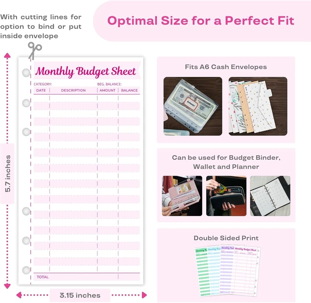 متعددة الأغراض - يمكنك استخدام أوراق الميزانية هذه لملف بحجم A6 أو محافظ أو أظرف شفافة أو مغلفة كمتتبع للنفقات أو التوفير.