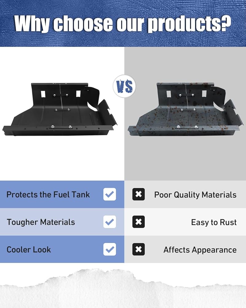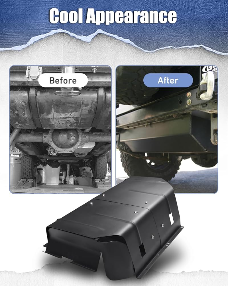 High Quality Material:Jeep yj gas tank skid plate is jig-welded and black powder coated for lasting durability.