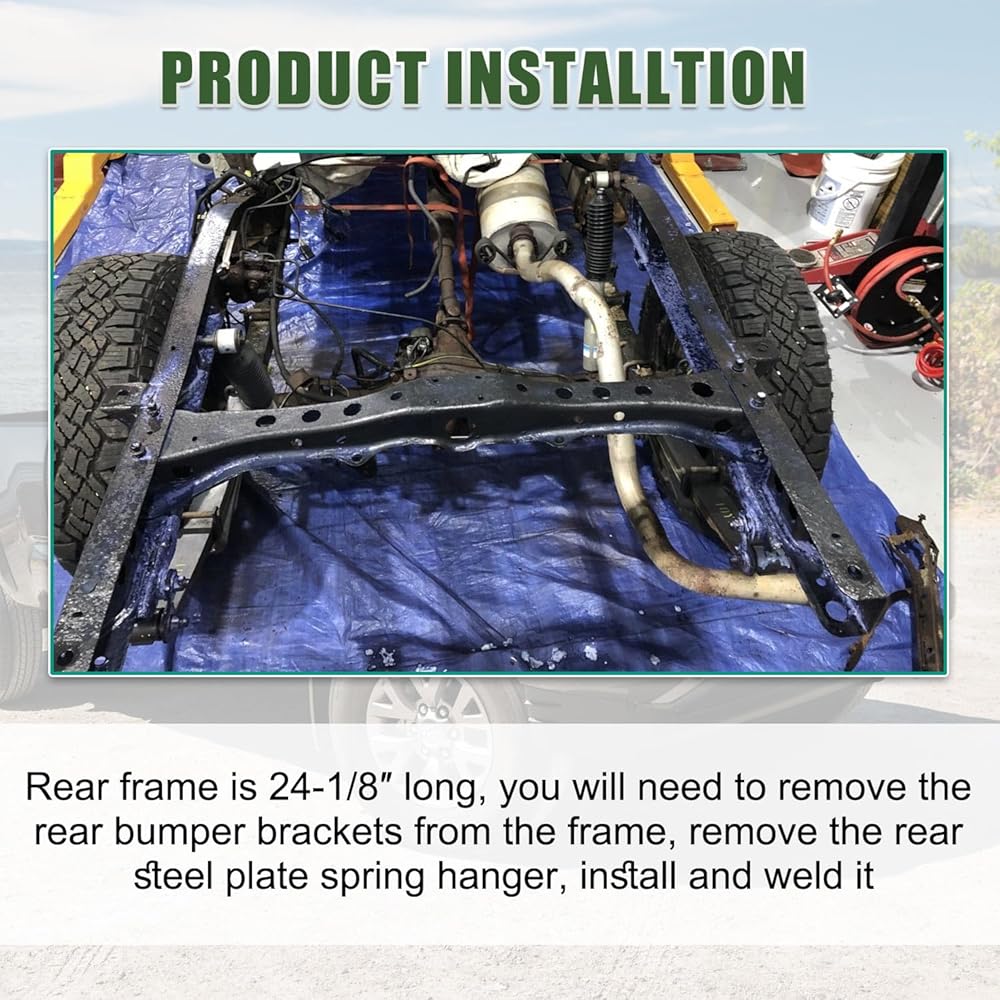 Fitment: Rear frame rust repair fit for 2005-2015 Toyota Tacoma 2nd Gen Reg Cab (2 doors), Access Cab (2.5 doors), Double Cab (4 doors). High-quality Materials: Frame rust repair kit made of 11 gauge high carbon steel, precision CNC cut, thicker than your existing frame. Unique: Zinc-coated surface treatment effectively prevents rust, prolongs the service life, does not affect the welding at all. Function: Rear frame is 24-1/8″ long, repaired the rear frame section of the cab, starting from half of the spare tire crossmember and ending at the rear end of the frame. Easy to Install: You will need to remove the rear bumper brackets from the frame, remove the rear steel plate spring hanger, install and weld it.