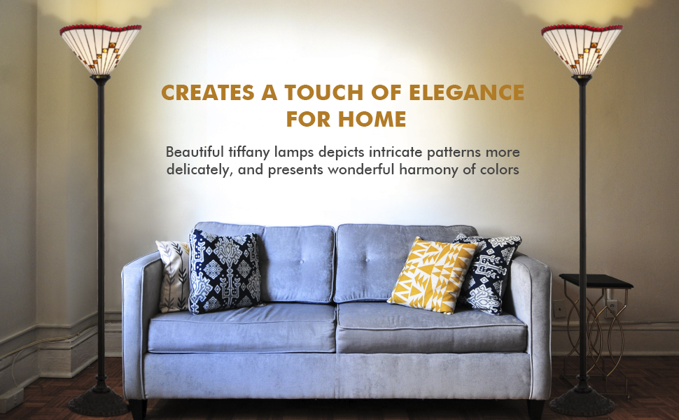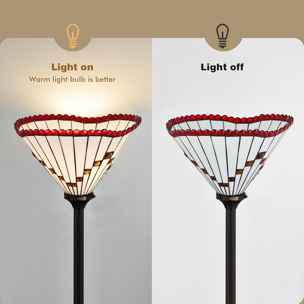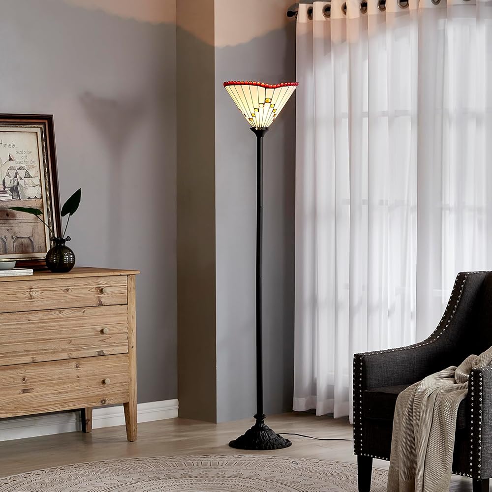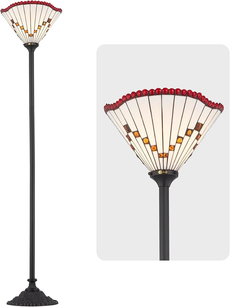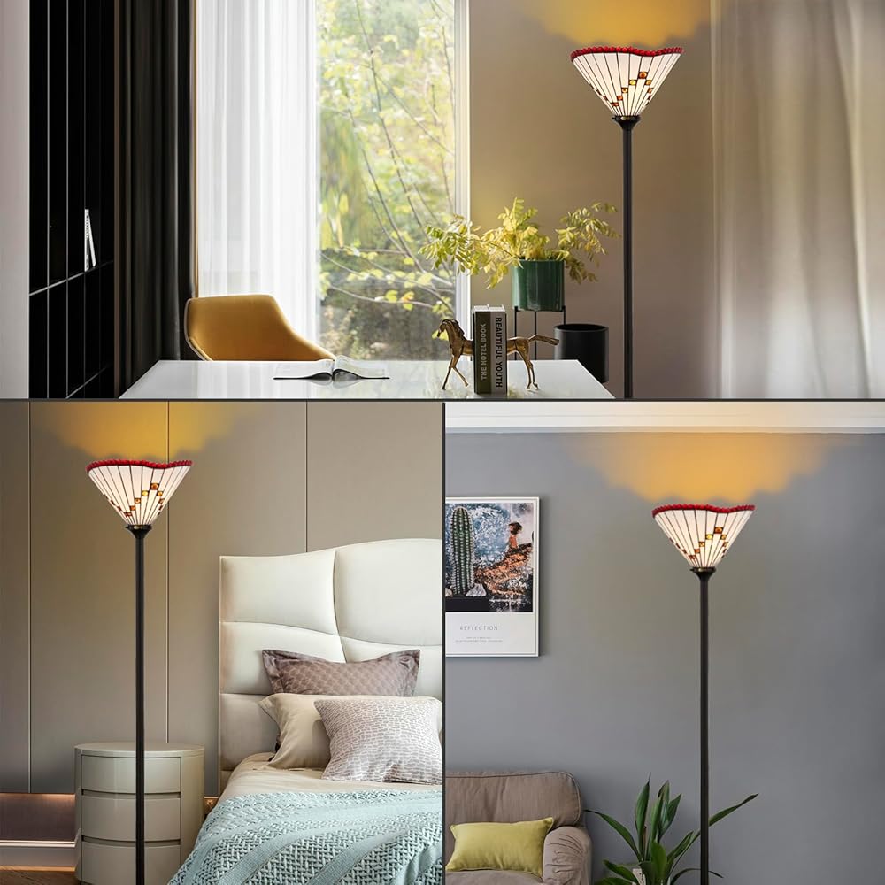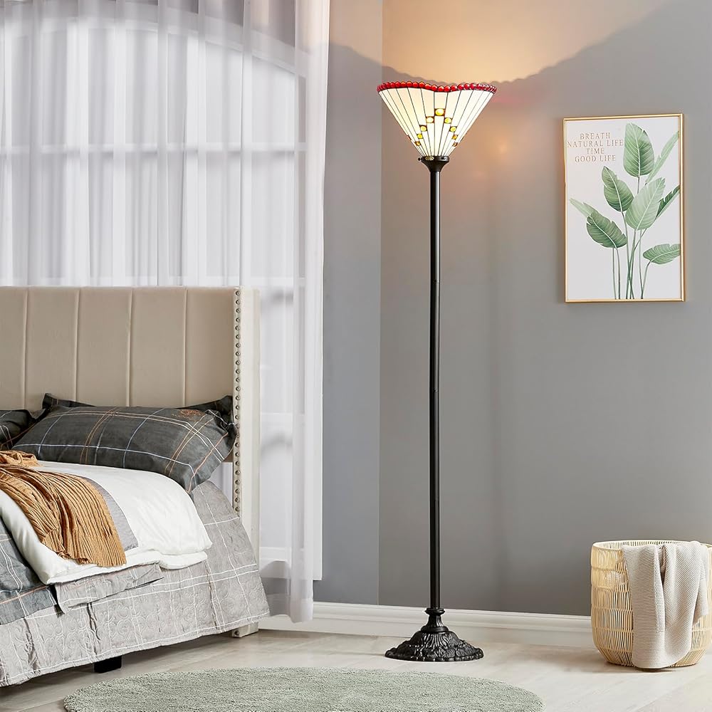 【تحفة ديكور أنيقة】: تقدم Rsbrillialite المصباح الأرضي Tiffany Style Torchiere، وهو مزيج من الفن الكلاسيكي والوظيفة. يقف على ارتفاع 71.5 بوصة، وسيبدو مذهلاً تمامًا في غرفتك وسيكون دائمًا نقطة نقاش لأي شخص يزوره، مصباح أرضي من الزجاج الملون.