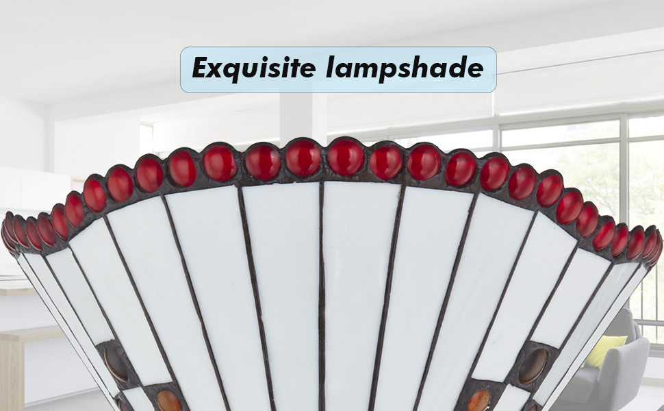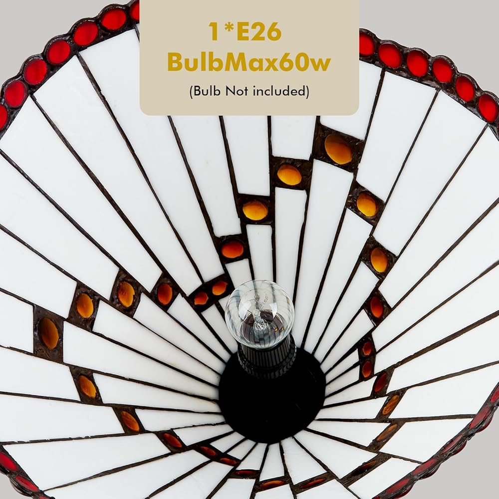【مصباح على الطراز العتيق Showstopper 】: يتميز بغطاء مصباح تم تجميعه يدويًا مصنوع من الزجاج الملون الحقيقي بنسبة 100%. يجمع كل ظل مئات من قطع الزجاج الملون التي تم دمجها معًا بواسطة قصدير لحام بدرجة حرارة عالية. فن الصناعة اليدوية يضمن عدم بهتان اللون أبدًا.