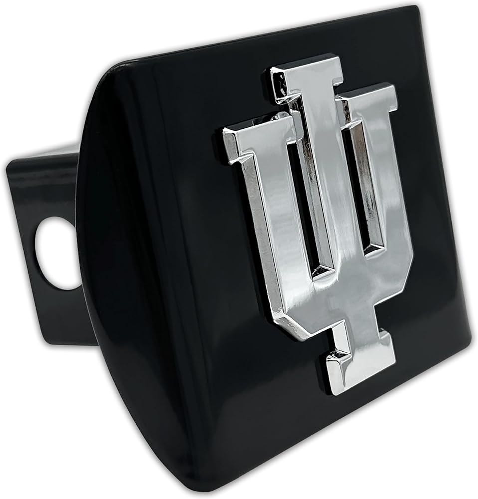 جامعة إنديانا Hoosiers "أسود مع شعار IU من الكروم" غطاء وصلة وصلة مقطورة رياضي للكلية يناسب جهاز استقبال شاحنة السيارات مقاس 2 بوصة