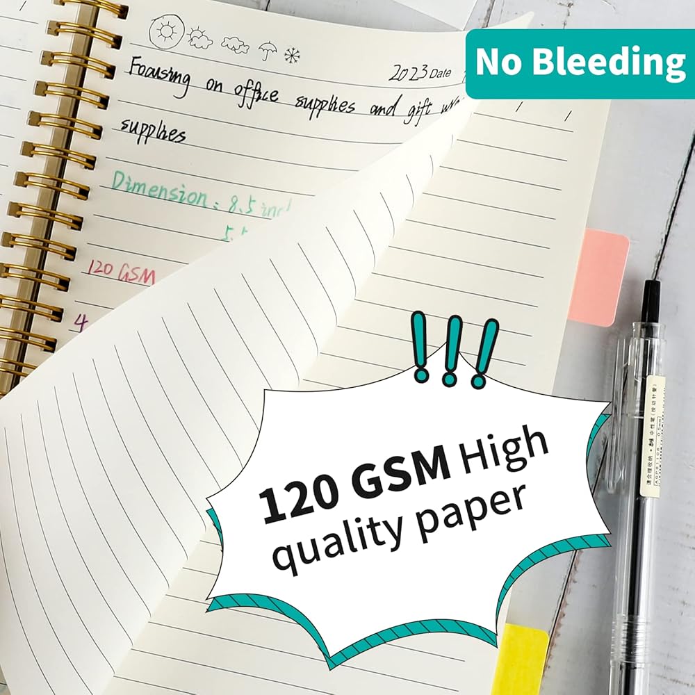 • ورق سميك 120 جرام في المتر المربع: 75 ورقة من 150 صفحة دفتر حلزوني بسمك 120 جرامًا في المتر المربع يوفر تجربة كتابة أكثر راحة، ولا مزيد من نزيف الحبر والظلال.