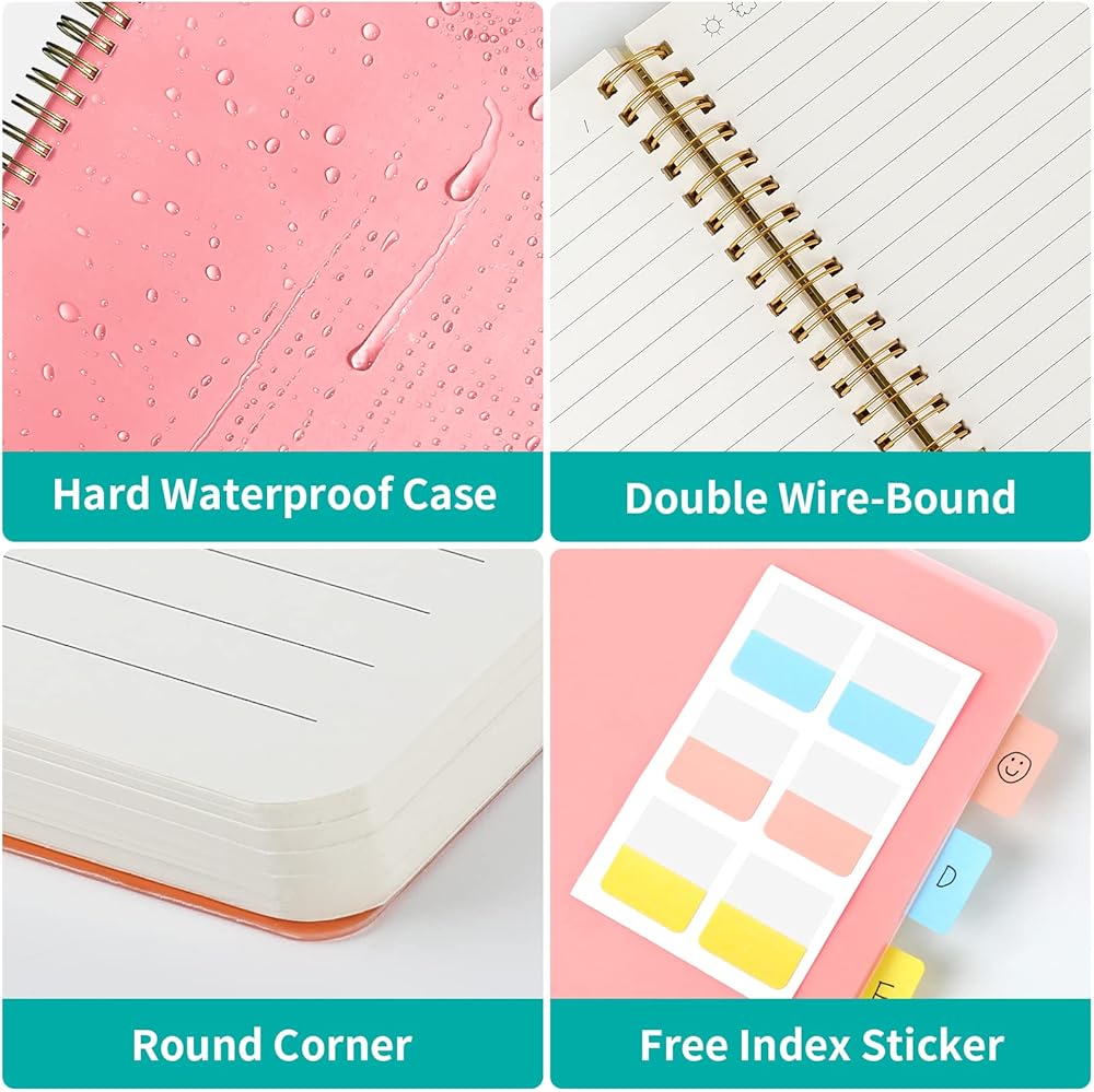 Smarpau 4 حزم دفتر يوميات حلزوني، 5.7 بوصة × 8.3 بوصة دفتر ملاحظات A5، ورق سميك 120 جرام في المتر المربع، 75 ورقة/150 صفحة، دفتر يوميات مبطن للمدرسة والعمل (برتقالي، أزرق، أصفر، وردي)
