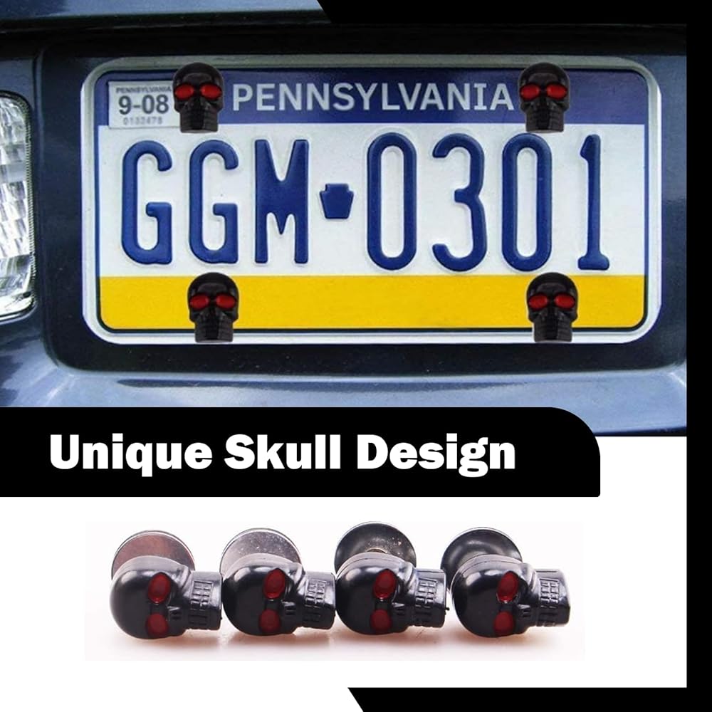 • Package Details: You will receive four silver 3D skull license plate holder decorative fastener bolts. This screw is a universal product, you can use it for cars and motorcycles, if you have any questions about the use of the product, please feel free to contact us.