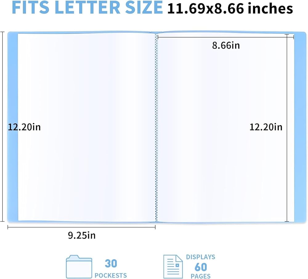 Organize and showcase your important documents, artwork, and photos with our A4 Display Book Presentation Folders. This pack includes a high-quality display folder with 30 clear pockets, providing ample space for your materials. Each pocket measures 12.2x8.66 inches, perfectly accommodating A4-sized sheets. Our A4 Display Book Presentation Folders protect, organize, and present your important documents and artwork with style. With its durable construction, ample storage capacity, and sleek design, it's the perfect solution for showcasing your creativity and professionalism