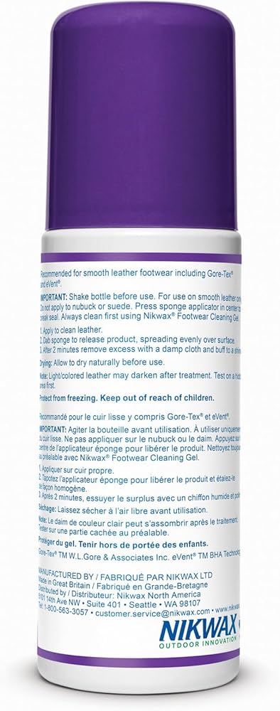 - يجب أولاً تنظيف جميع العناصر باستخدام جل تنظيف الأحذية Nikwax قبل العزل المائي. تترك المنظفات المنزلية وراءها بقايا تجذب الماء