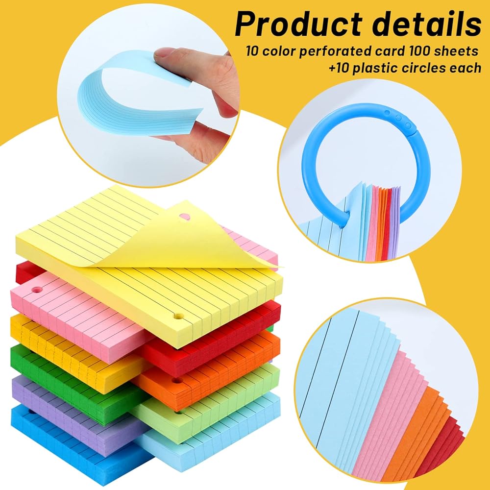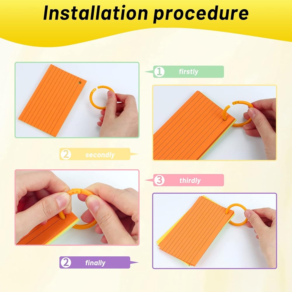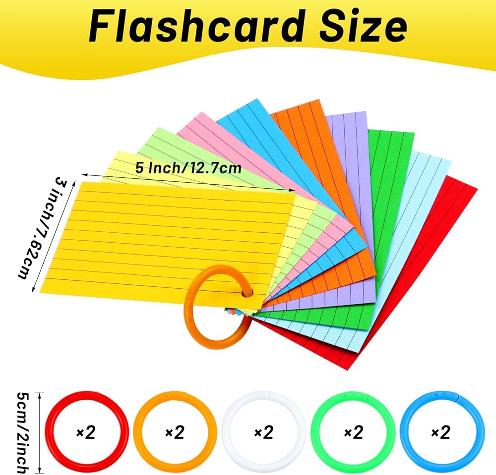 Index Cards Bulk: You will received 600 sheets colored index cards with 10 pieces flash cards rings. Enough quantity to meet the needs of multiple projects.